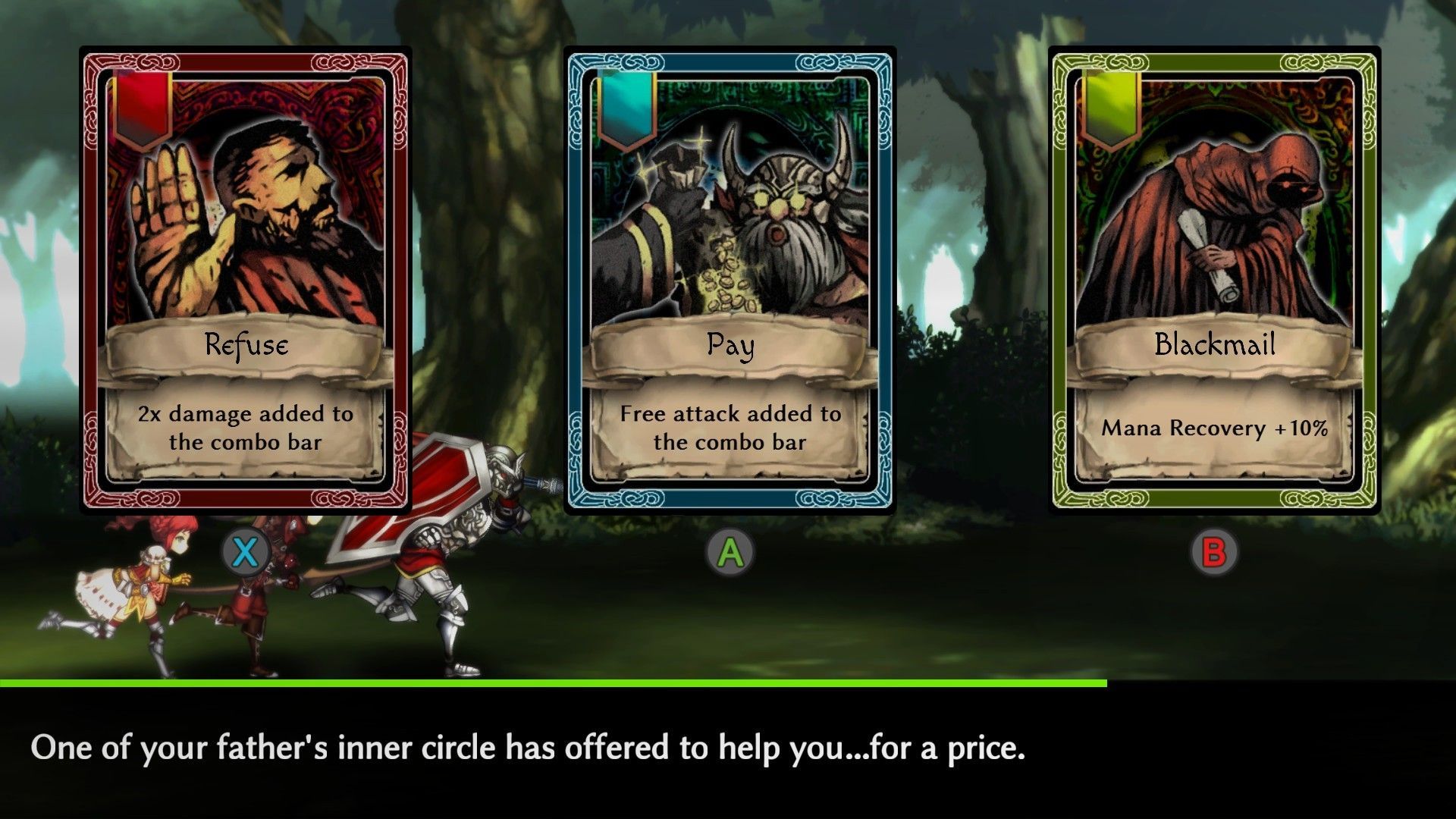 Entre combate y combate nos darán a escoger varias formas de actuar ante determinados problemas que afectan a nuestro reino, las cuales afectarán a la moral de nuestro reino. Eso sí, estas decisiones también nos darán potenciadores o penalizadores en la batalla, por lo que la elección nunca es fácil. Realmente no deja de ser un sistema de ventajas y desventajas encubierto bajo una capa de moralidad, pero funciona y consigue que nos impliquemos mucho más en la acción y en la historia, a pesar de que estas elecciones no tienen ningún impacto en el devenir de los acontecimientos, más allá de algún que otro diálogo modificado.
