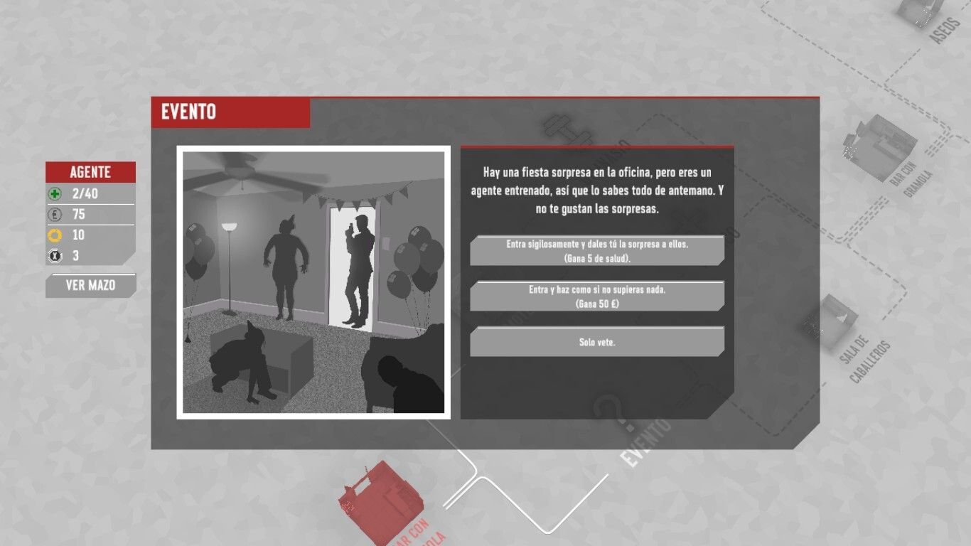 La estructura roguelite nos fuerza a pensar bien cada movimiento para mantener nuestra salud hasta el enfrentamiento final, aunque por el camino hasta ese último nivel no sólo nos encontraremos escenarios de pelea sino que también habrá gimnasios para mejorar y gestionar nuestro mazo, médicos para curarnos y aumentar nuestro nivel de vida máximo y eventos aleatorios con un toque rolero que nos darán recompensas especiales a veces imprevisibles. Mientras que el hilo argumental del juego está ahí como eje conductor algo desaprovechado, esta progresión por cada una de las múltiples misiones sí es más interesante y dispone de momentos escritos con humor que le sientan fenomenal al conjunto.