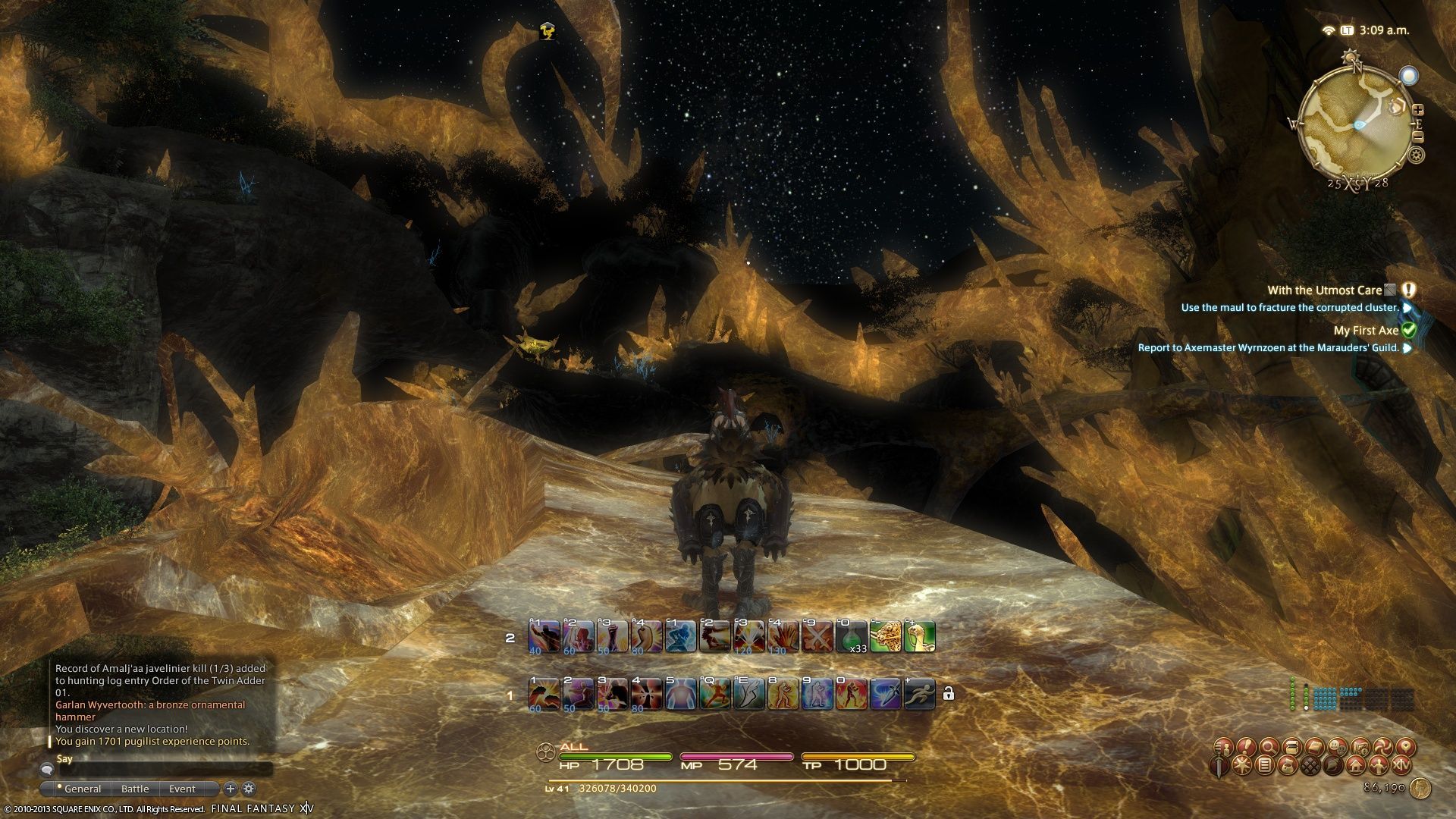 Otro método alternativo para conseguir experiencia lo encontraremos en el Hunting Log. Cada clase tiene un diario de caza propio en el cual nos propondrán que demos muerte a ciertas criaturas a cambio de una determinada suma de experiencia. Tampoco podemos olvidarnos de las Levequest, las cuales se han recuperado de la versión 1.0, aunque bastante mejor planteadas. Se tratan de unos encargos cronometrados y de dificultad ajustable que podremos obtener en los diversos campamentos del juego, aunque para poder emprenderlas necesitaremos unos permisos que obtendremos automáticamente cada 12 horas, pudiendo almacenar hasta un máximo de 100. No son demasiado estimulantes ni divertidas, pero ayudan en los primeros niveles, aunque nuestro consejo es que los permisos los invirtáis en las Leves de crafting, ya que es el mejor sistema para subir artesanías.