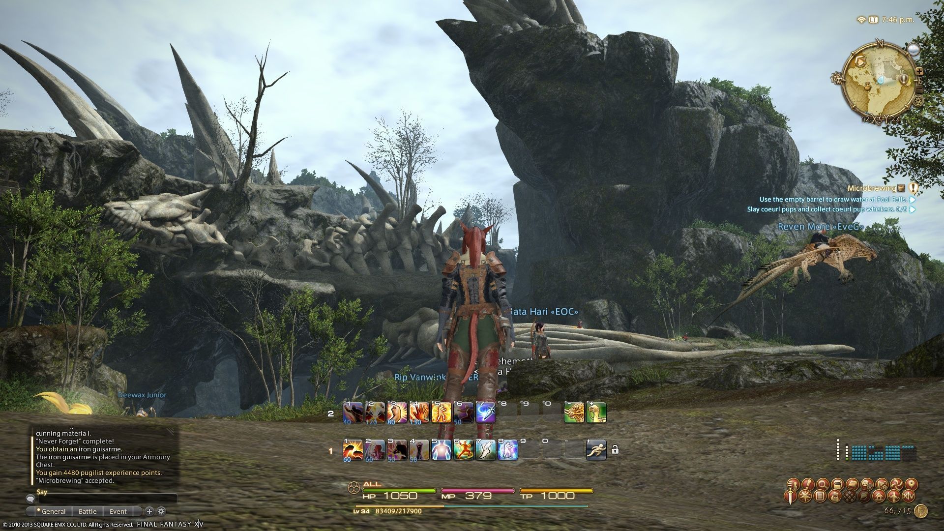 En cuanto a las FATEs, este es el nombre que han recibido los cada vez más habituales eventos dinámicos que podemos encontrar en juegos como Guild Wars 2 o Rift. Estas irán apareciendo con una frecuencia bastante alta en todos los mapas y dependiendo de nuestra participación se nos otorgará rango de bronce, plata u oro. Mientras mejor lo hagamos, más experiencia y sellos de Grand Company recibiremos. Lo mejor para ello es que os busquéis un grupo para farmear FATEs, ya que esto os permitirá ir de una a otra sin parar (junto a la mayoría de jugadores de la zona), sacar oro casi siempre y recibir unas cantidades de experiencia muy altas que os harán subir a toda velocidad.