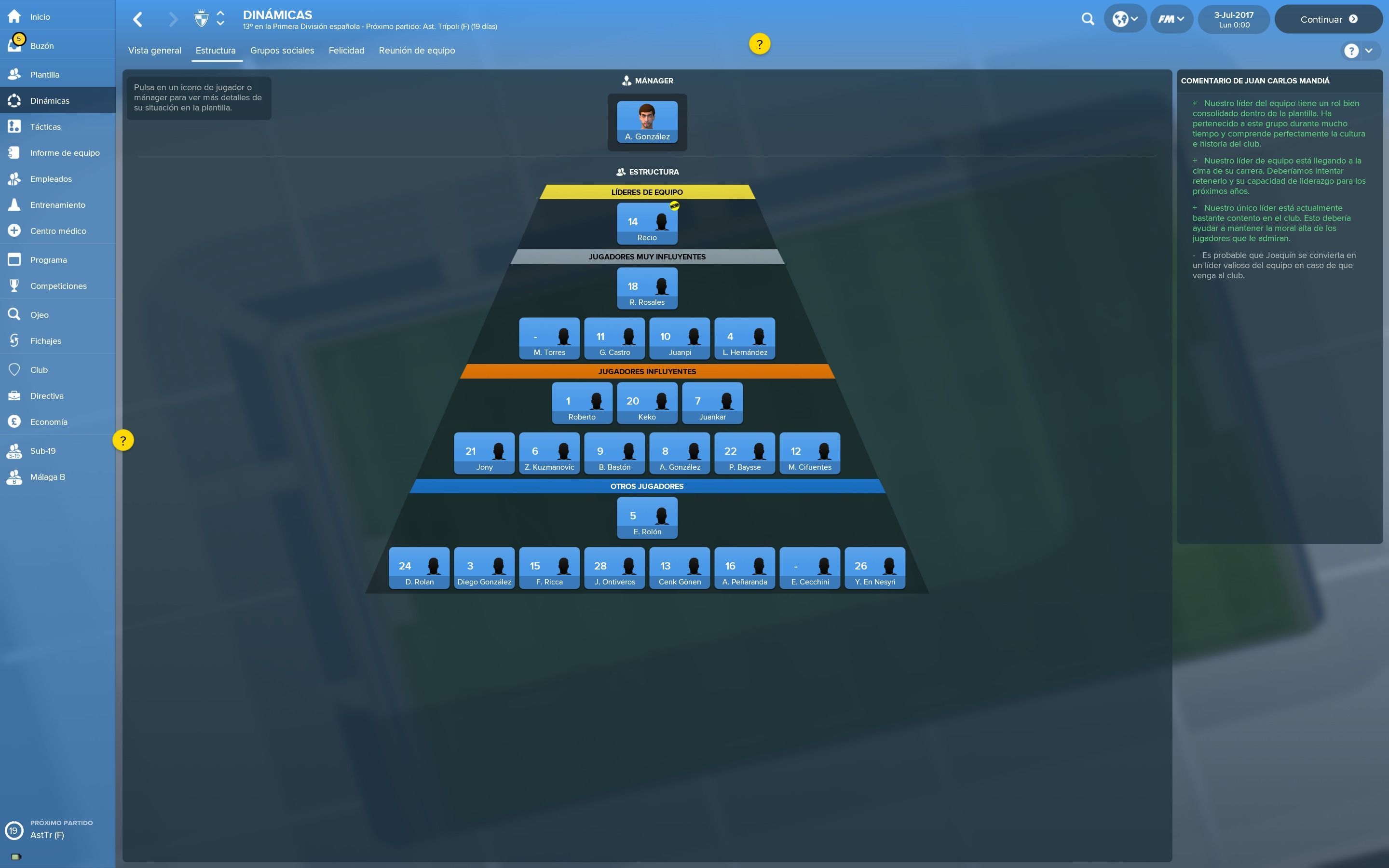 Anteriormente, para saber qué jugadores cuajaban o se llevaban bien entre ellos, debíamos ir uno por uno, metiéndonos en su ficha o perfil, pera descubrir si era compatible o no con otra de las estrellas o jugadores de nuestra plantilla. Tenía cierta influencia, pues si había compenetración, podíamos tener un jugador rindiendo a un gran nivel e incluso, usar sus amistades para potenciar fichajes o traspasos. Pero repetimos: parecía todo un tanto anecdótico, pues se trataba de una mecánica oculta a la que teníamos que recurrir en el océano de opciones del juego para otorgarle la importancia que quizás no tenía.
