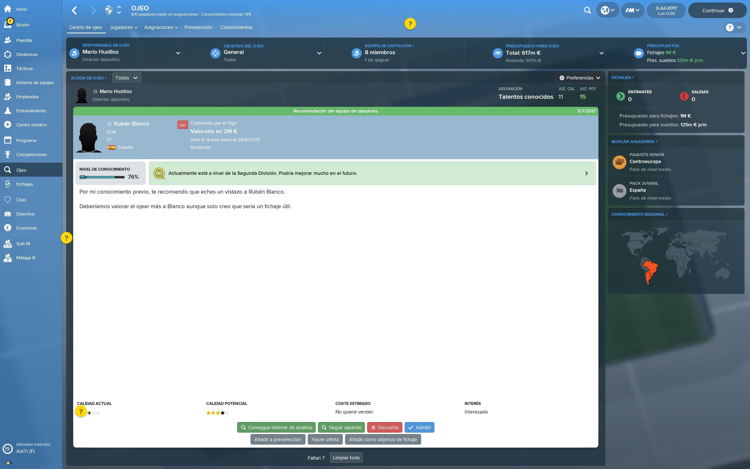 Otro añadido, o mejor dicho evolución, es el correspondiente a los ojeadores. Sí, estaban presentes antes -y de hecho la entrega de 2017 estableció múltiples novedades al respecto-, pero en esta edición de 2018 volvemos a constatar su mayor predominancia e importancia dentro del organigrama del videojuego, siendo más evidentes en la mecánica básica de la partida y gozando de mayor relevancia. El sistema de ojeo es mucho más realista, con una nueva herramienta que usa datos en bruto para ofrecernos análisis mucho más pormenorizados, presentándonos un control mayor de los informes y una exactitud inusitada de cara a las recomendaciones sobre los fichajes que más nos convienen.