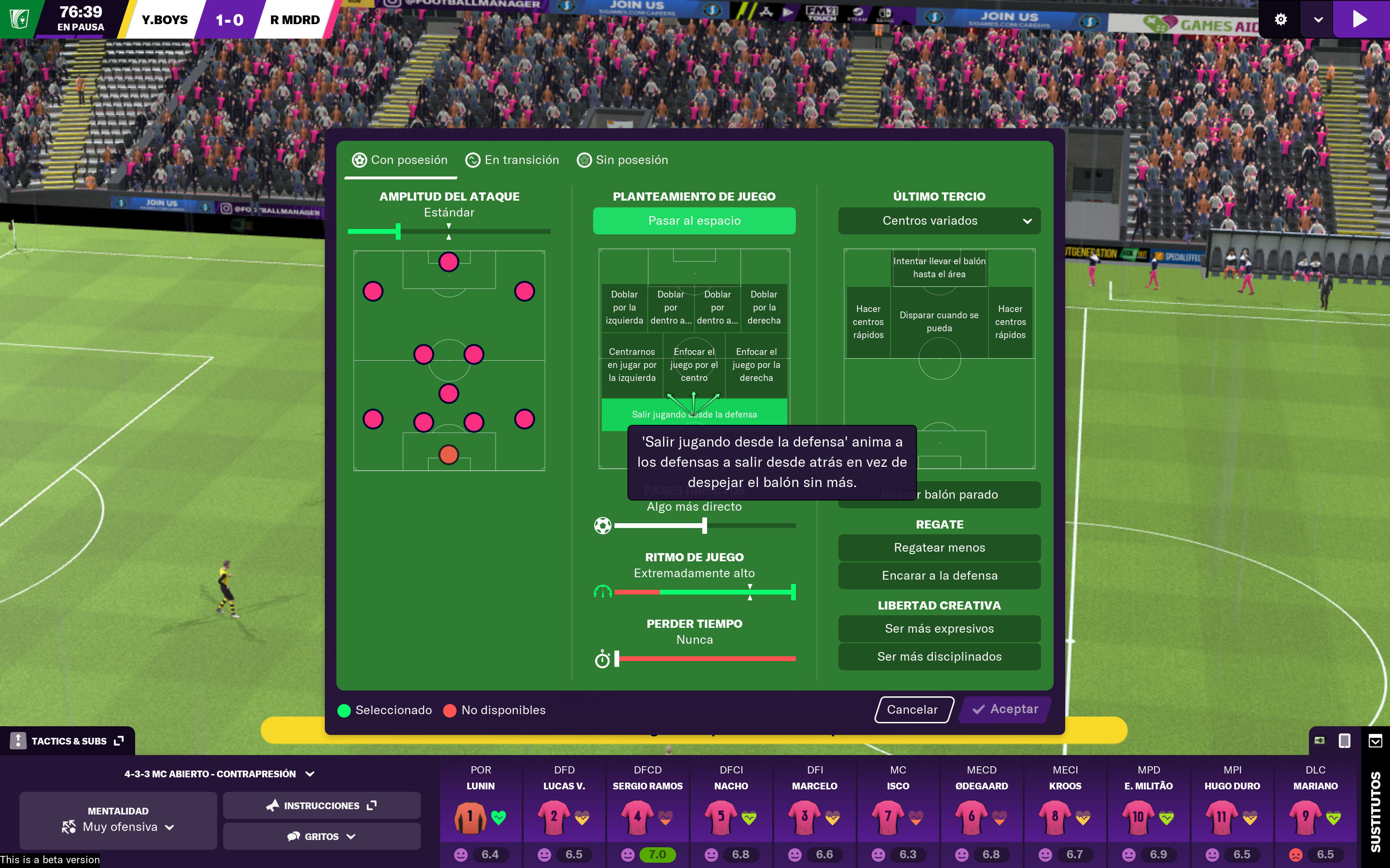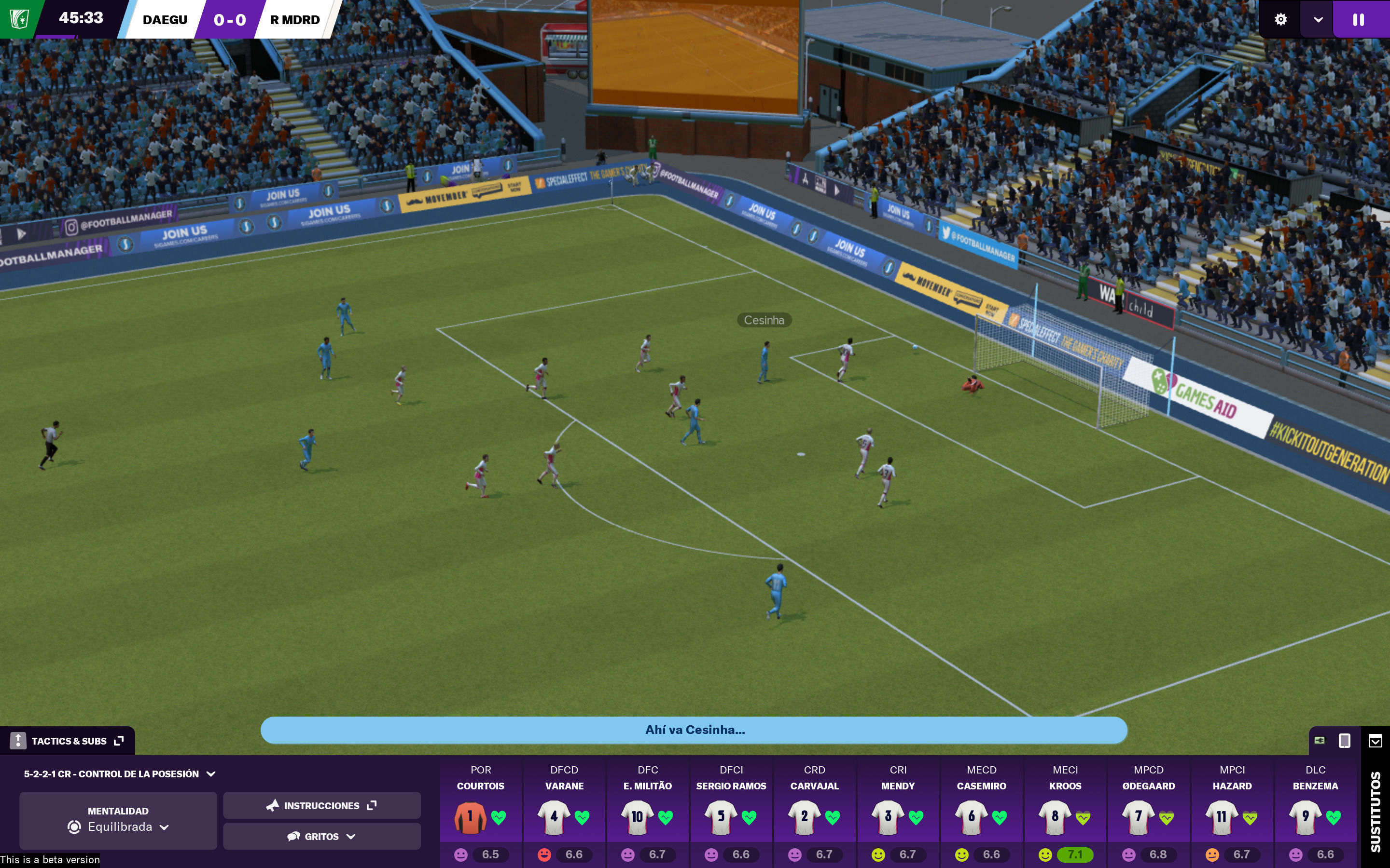 Si lo de fuera es importante, y los cambios visuales y estéticos son decisivos en un juego como Football Manager 2021, también lo son los ajustes en la simulación. No olvidemos que en Sports Interactive se pasan los años naturales viendo partidos, analizando datos, revisando cientos de miles de estrategias, comportamientos y encuentros, y trasladándolo todo al juego. El logro técnico que esto supone se ha reflejado en el motor de partidos y en la inteligencia artificial, con decisiones rápidas que tienen efectos directos en el partido, y con jugadores que toman elecciones en el encuentro cada cuarto de segundo, analizando en tiempo real lo que sucede a su alrededor y jugando en función de lo que están viendo en ese momento. Esto se traduce a una conciencia defensiva colectiva más precisa con defensores más en sintonía con las amenazas de ataque, siendo capaces de tomar y dejar asignaciones de marcado más rápidamente y de manera orgánica y creíble. El centro del campo es ahora más refinado, se dan más pases de directos y se abandonan los toques interminables, reflejando los ajustes en el fútbol en los últimos años. Sí es cierto que hemos notado más intercepciones y bloqueos de jugadores defensivos en el centro del campo, pero esto se compensa con un último tercio de la cancha más agresivo, con espacios y jugadores que mueven y arrastran a las defensas como los delanteros más pillos. En definitiva: Football Manager 2021 representa los partidos de tal manera que parecen recreaciones de lo que podemos ver en las retransmisiones de las principales ligas europeas.