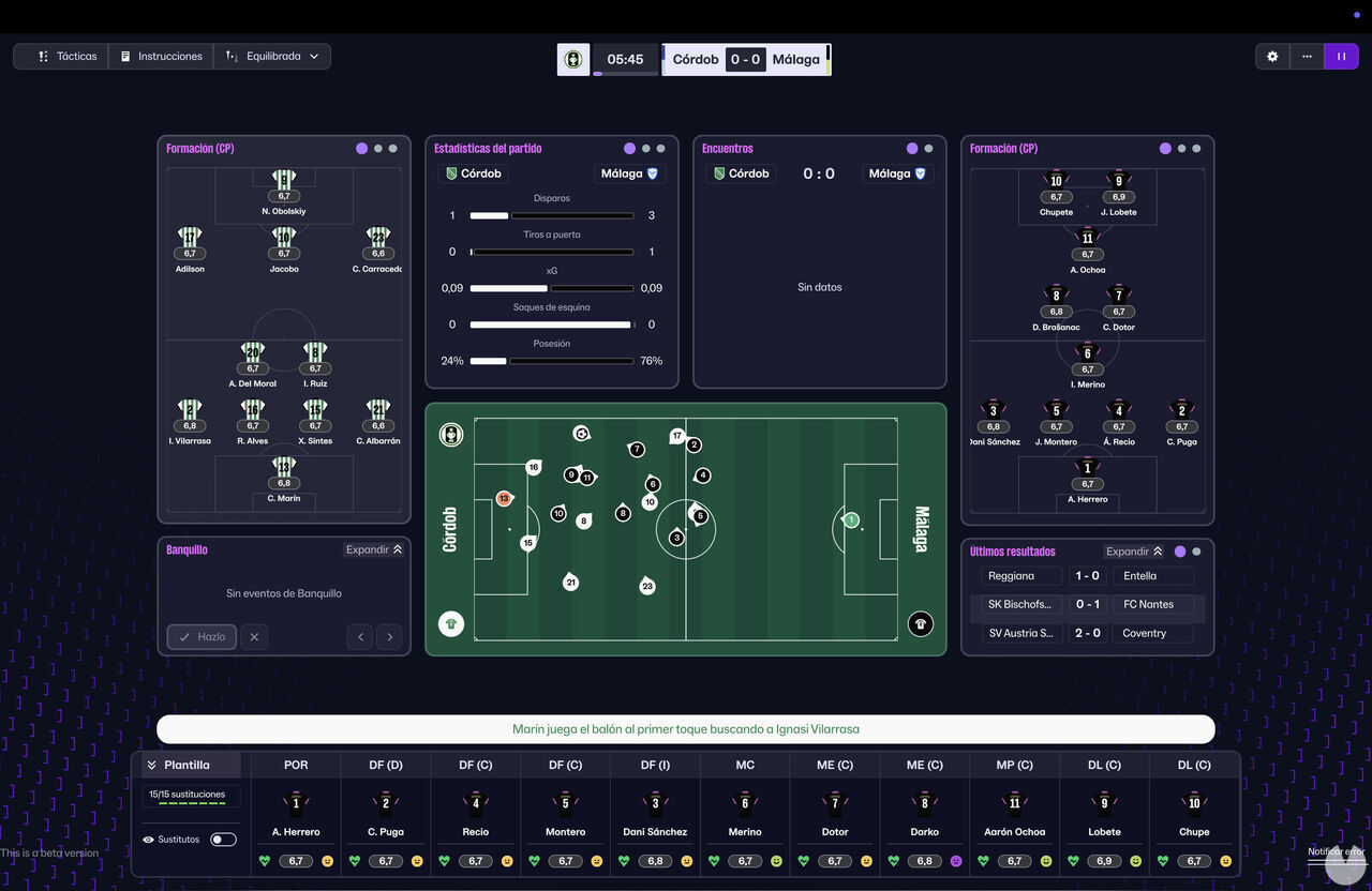 Hay un ejemplo claro. En las primeras doce horas de partida en nuestro análisis, descubrimos que apenas se habían disputado seis encuentros, y eso incluso delegando múltiples tareas a los ayudantes. ¿Es más realista que nunca? Sí, no hay ninguna duda al respecto, la experiencia es muy profunda. Pero creemos que, en determinados momentos, el juego se ahoga en su propio detalle, interrumpiendo constantemente el flujo con notificaciones y microdecisiones que, en la práctica, aportan poco al devenir de nuestros resultados. La idea de vivir una carrera dinámica queda sustituida por la de sobrevivir a una montaña de correos y pantallas. Es una lástima, pero pensamos que con algún que otro retoque y agrupando decisiones y aspectos físicos y técnicos en un mismo lugar, esto puede cambiar a mejor.