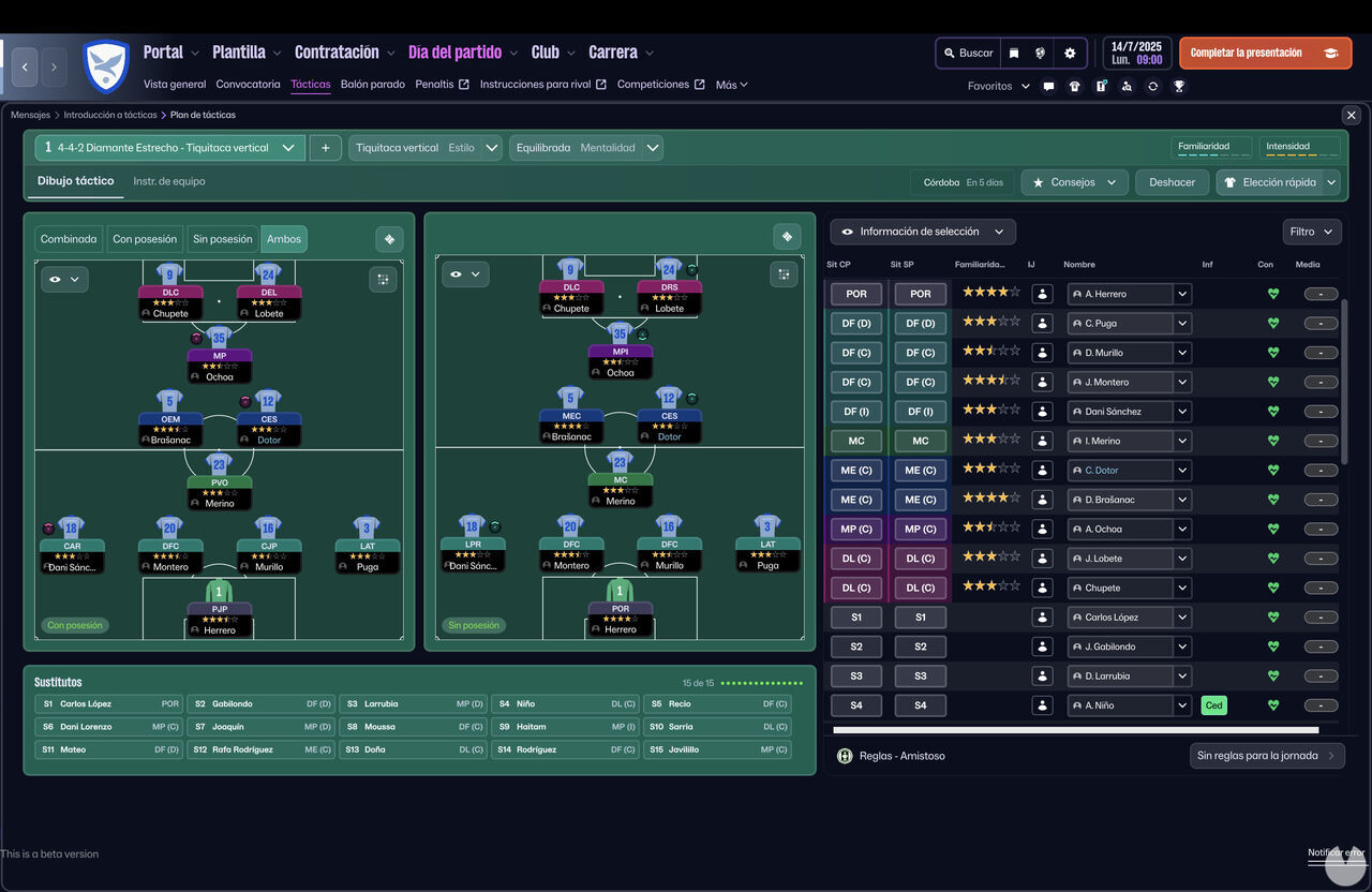 Pese a que agradecemos saber todos y cada uno de los detalles de nuestros jugadores o los pormenores del equipo que queremos llevar a la gloria, creemos que el nuevo rediseño de la interfaz es, en determinados aspectos, una auténtica pesadilla de información. Lo que pretendía ser una mejora en manos de Sports Interactive -más datos en cada pantalla, menos clics- termina ofreciéndonos lo contrario en muchas circunstancias. Sí, volvemos a la era oscura de Football Manager, aquella de los menús saturados, iconos diminutos y una avalancha de estadísticas que convierten cada sesión en una lucha contra la fatiga digital -todo eso sin hablar de algunos errores técnicos en la citada interfaz, con textos ilegibles o links que dan error al pinchar en ellos-.