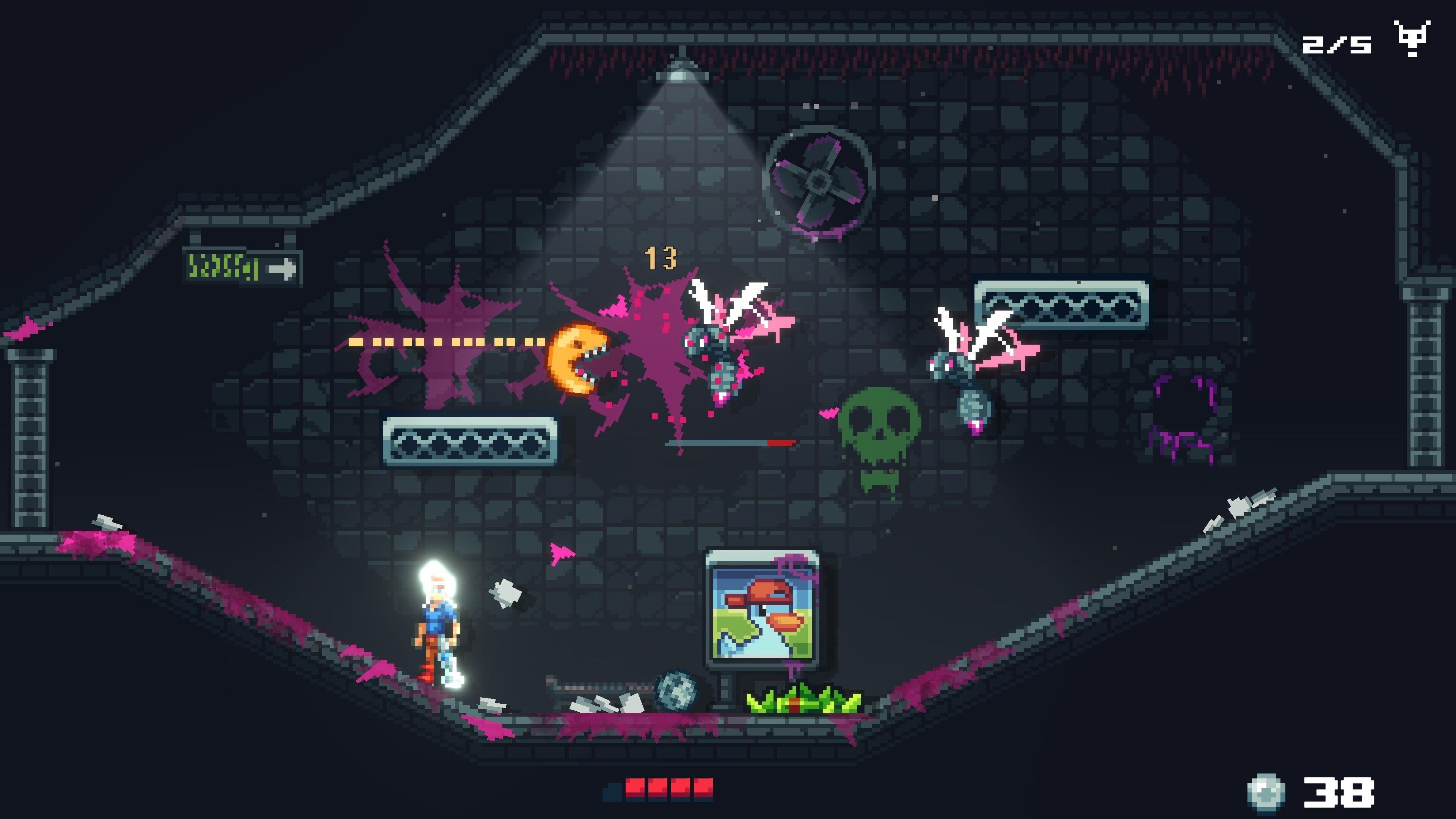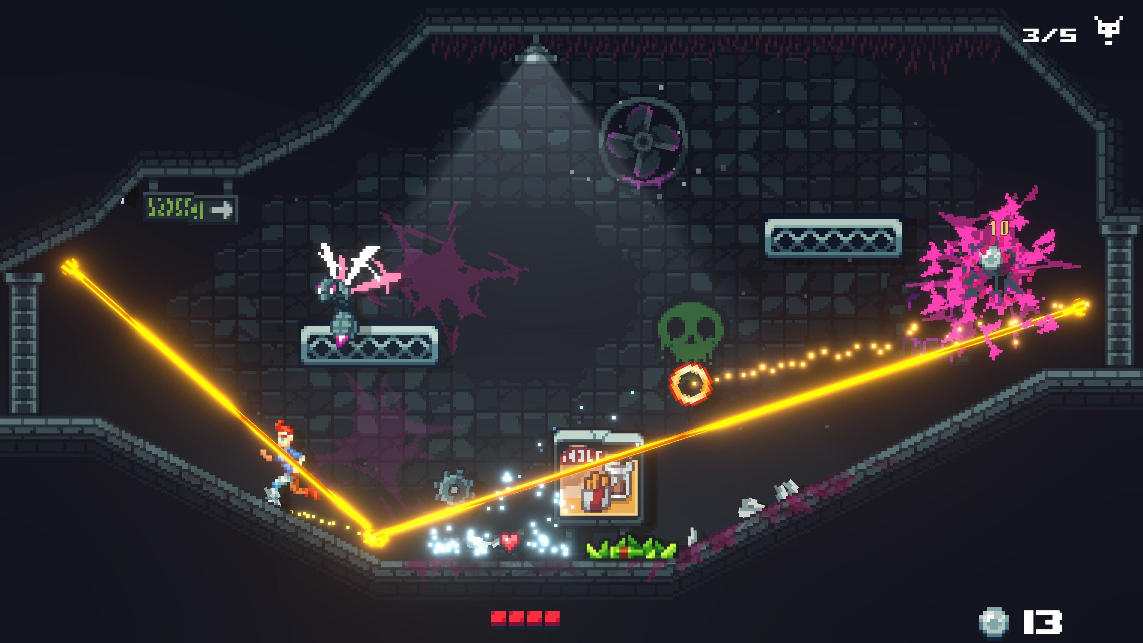 Cada "run" o vuelta consiste en 5 niveles, cuyos entornos siempre giran alrededor de una paleta "grunge", de colores muteados, y el "Undeground" del título aparece como forma de conceptualizar tu recorrido por estos niveles, con distintos caminos que puedes elegir al estilo de Slay the Spire, moviéndote de una habitación a otra en un tren de metro. Hay también, por tanto, salas sorpresa y pequeños retos que intentan aportar frescura a la fórmula. La palabra es "intentar", porque se quedan en tres: una habitación con una piñata en el centro, otra que tiene dianas que van apareciendo en distintos sitios, otro que se inspira en el clásico Arkanoid... y un nivel de plataformas a contrarreloj (que siempre es el mismo). Vale, son cuatro. Pero si después de una hora de runs ya te los sabes de memoria, que te los presenten como "niveles sorpresa" tiene más gracia que las bromas que hacen en el tráiler.