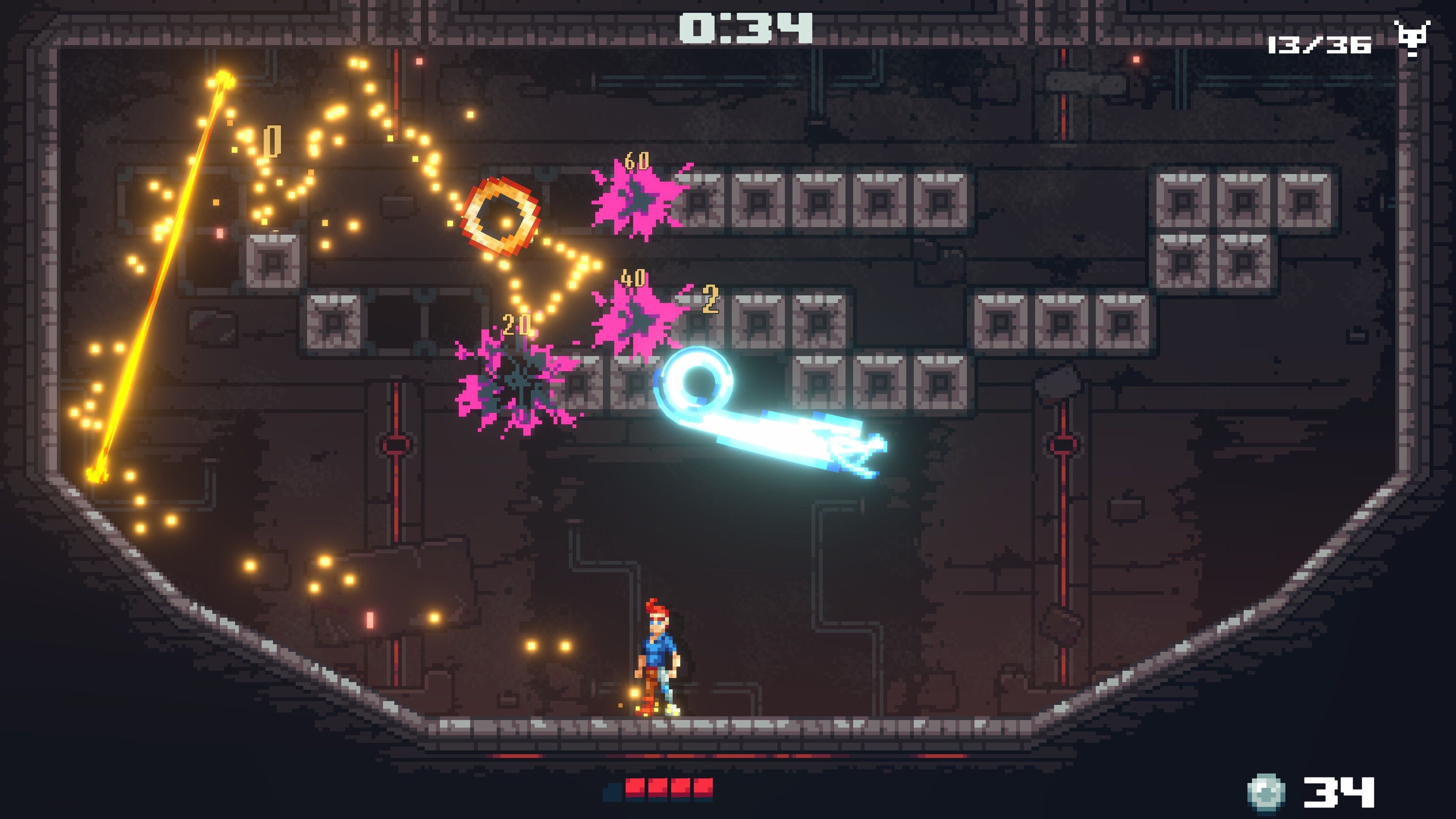 Esto viene por el diseño de los niveles, que siempre consisten en una única habitación en la que aparecen una cantidad de monstruos que aparecen en pantalla. Y además, el juego te indica claramente desde dónde van a aparecer, así que sólo tienes que prepararte, ajustar el disparo y atender al tipo de enemigo para definir tu estrategia en consecuencia. Es como si te encerrasen dentro de una máquina de pinball, pero sin la fiesta y la locura de color que asociamos a ellas. La realidad es que es más bien claustrofóbico, porque aunque puedes jugar a ser efectista o eficiente en tus "runs", los retos que te ofrece Footgun: Underground son limitados, por mucho que se esfuercen en parecer lo contrario.