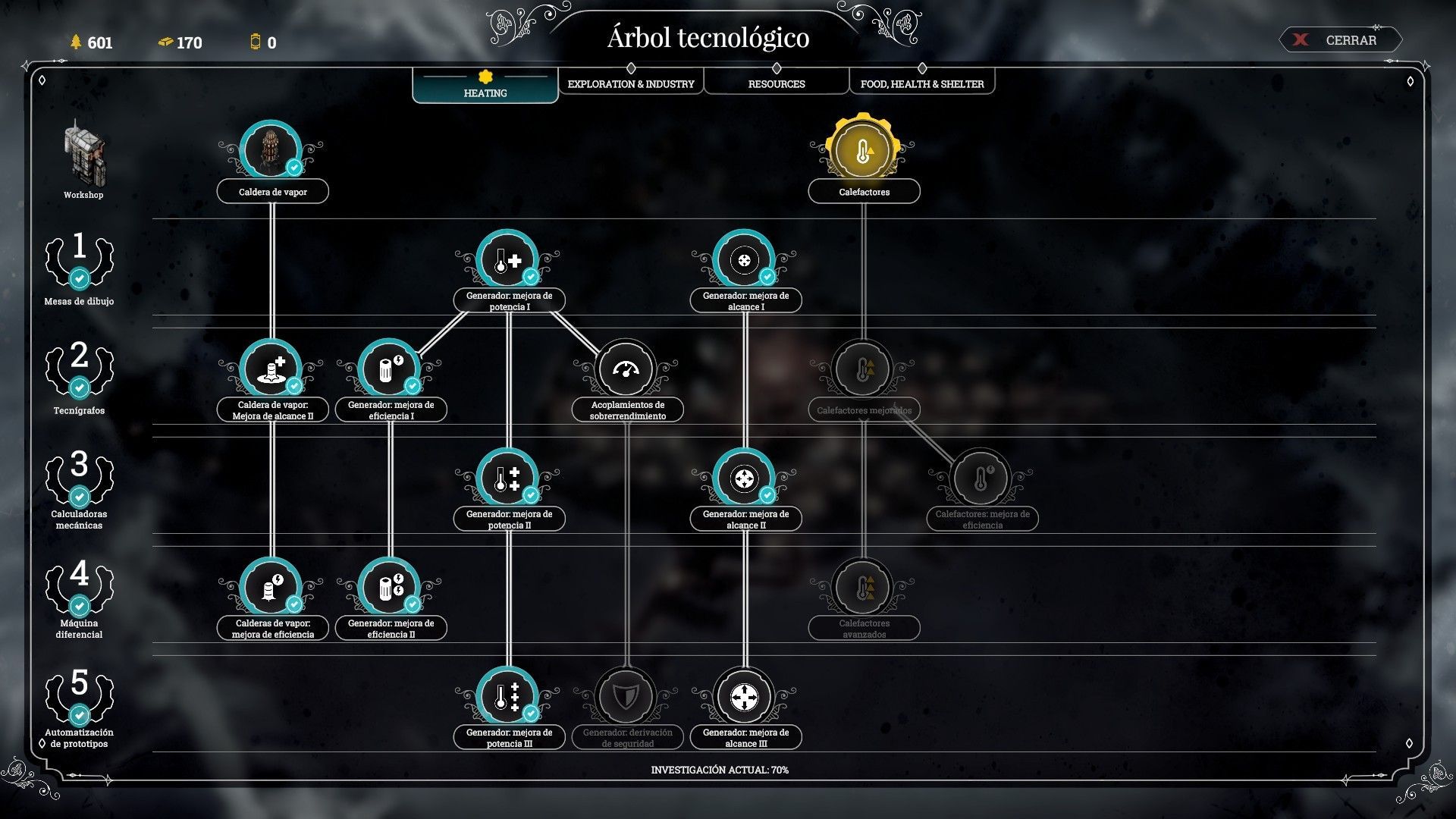 Durante la partida será muy importante saber jugar bien con el generador, investigando a tiempo sus mejoras para tener esa potencia extra que necesitaremos para mantener el calor de nuestra ciudad a medida que avance la partida.