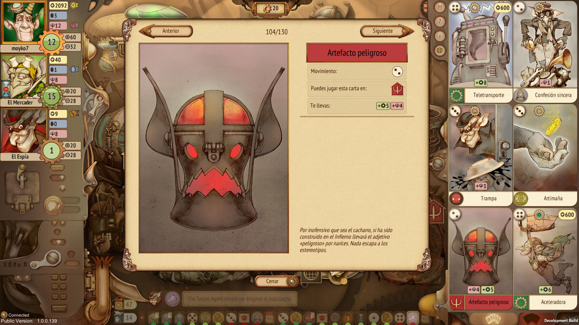 Definir Gremlins, Inc. es harto complicado, sobre todo cuando encontramos cientos de elementos rondando alrededor de su propuesta jugable. Además, para mayor dificultad, en el juego seremos absorbidos por una presentación steampunk muy marcada, y por una serie de personajes que nos incitarán, literalmente, a hacer el más obsceno y evidente número de trampas. Como os podéis imaginar, la sensación de desconcierto nos invadirá de primeras, mostrándose ante nosotros uno de los videojuegos de cartas y estrategia más originales y distintos de los últimos tiempos; uno de los pocos capaces de tenernos horas pegados delante de la pantalla de nuestro ordenador pensando en la siguiente partida o jugada a realizar.