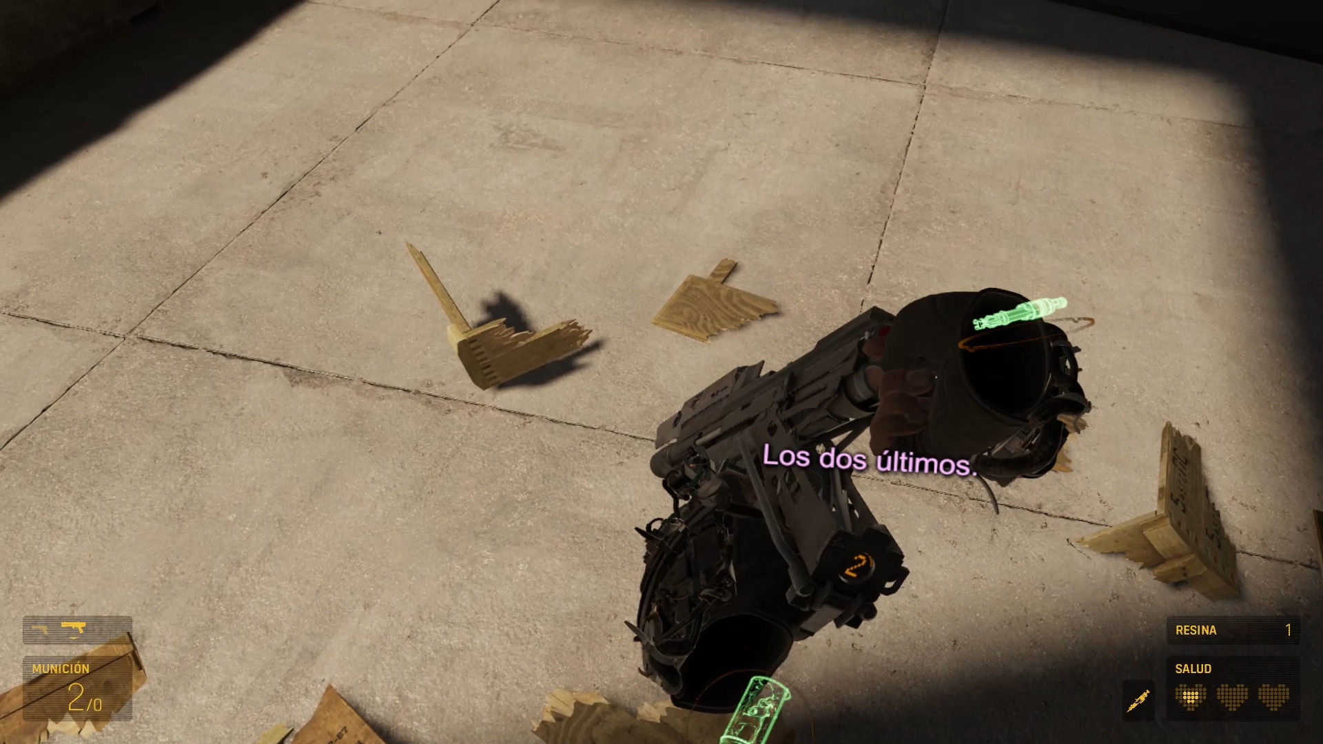 Sin embargo, esto acarrea problemas. En situaciones donde necesitamos actuar rápido es inviable detenerse a explorar cada recoveco. Y en otras ocasiones quizá estemos cansados, física y mentalmente, de ponernos a rebuscar en las taquillas, cajones y otros elementos del escenario. Aquí es donde entran en juego los Guantes de gravedad: un invento repleto de chips al descubierto, cables y otros detallitos, como una pantalla donde se nos indica nuestra vida, que prácticamente nos convierten en Spider-Man. Apuntamos hacia un objeto: una silla, una bombona explosiva, una resina para mejorar nuestras armas, cargadores, etc.; cerramos los dedos y tiramos hacia atrás, haciendo que el ítem vuele hacia nosotros. Cuando esté a nuestra altura, volvemos a cerrar la mano para cogerlo. Es versátil, divertido e increíblemente satisfactorio.