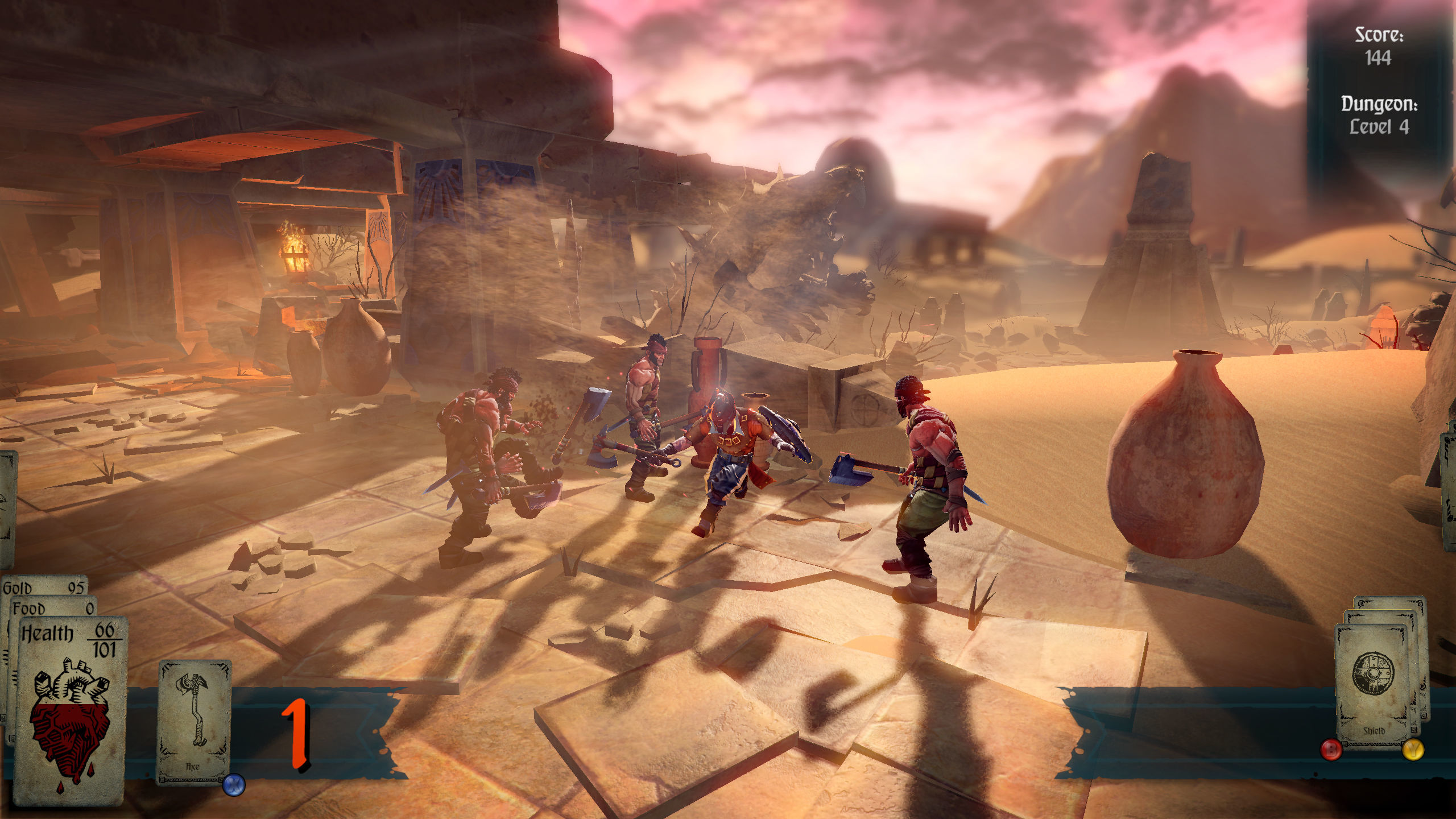 ¿Nos la jugamos y decidimos entrar en el juego de nuestro oponente, escogiendo una carta al azar para obtener una mejor espada o armadura, o por el contrario preferimos ser conservadores y aventurarnos a posible un combate contra un enemigo con el paupérrimos equipo que tenemos? Es por eso que, aunque estamos hablando de un juego de rol que mira por parámetros firmes como la salud, el equipamiento o la cantidad de oro recogido, siempre tenemos la posibilidad de aumentar nuestra buena o mala suerte con una carta, cambiando el sino de la partida en un abrir y cerrar de ojos.