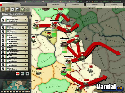 Hasta aquí no vemos innovación con respecto a otros juegos de Paradox, pero he aquí que cada una de las unidades tiene órdenes específicas que permiten dar un toque estratégico al ataque. Esto es, las unidades pueden realizar ataques directos, apoyar un ataque o hacer misiones específicas. Puesto que el juego está estructurado en turnos continuos, que se dividen en horas, podemos realizar una cola de ataque para diezmar a los enemigos. Esto es: Bombardeo, superioridad aérea, ataque y apoyo al ataque. Este "turno" es muy interesante, ya que nos permite con habilidad, establecer una superioridad aérea para compensar una terrestre y viceversa. La resistencia de las provincias ahora no se basa tanto en el control, sino, de manera más realista, en la defensa de un ejército. Si ese ejército fracasa, tomas por completo la provincia sin necesidad de un tiempo de control como en juegos pasados. Como es habitual, las provincias no te son adjudicadas con su conquista, sino que debes negociarla con la nación enemiga.