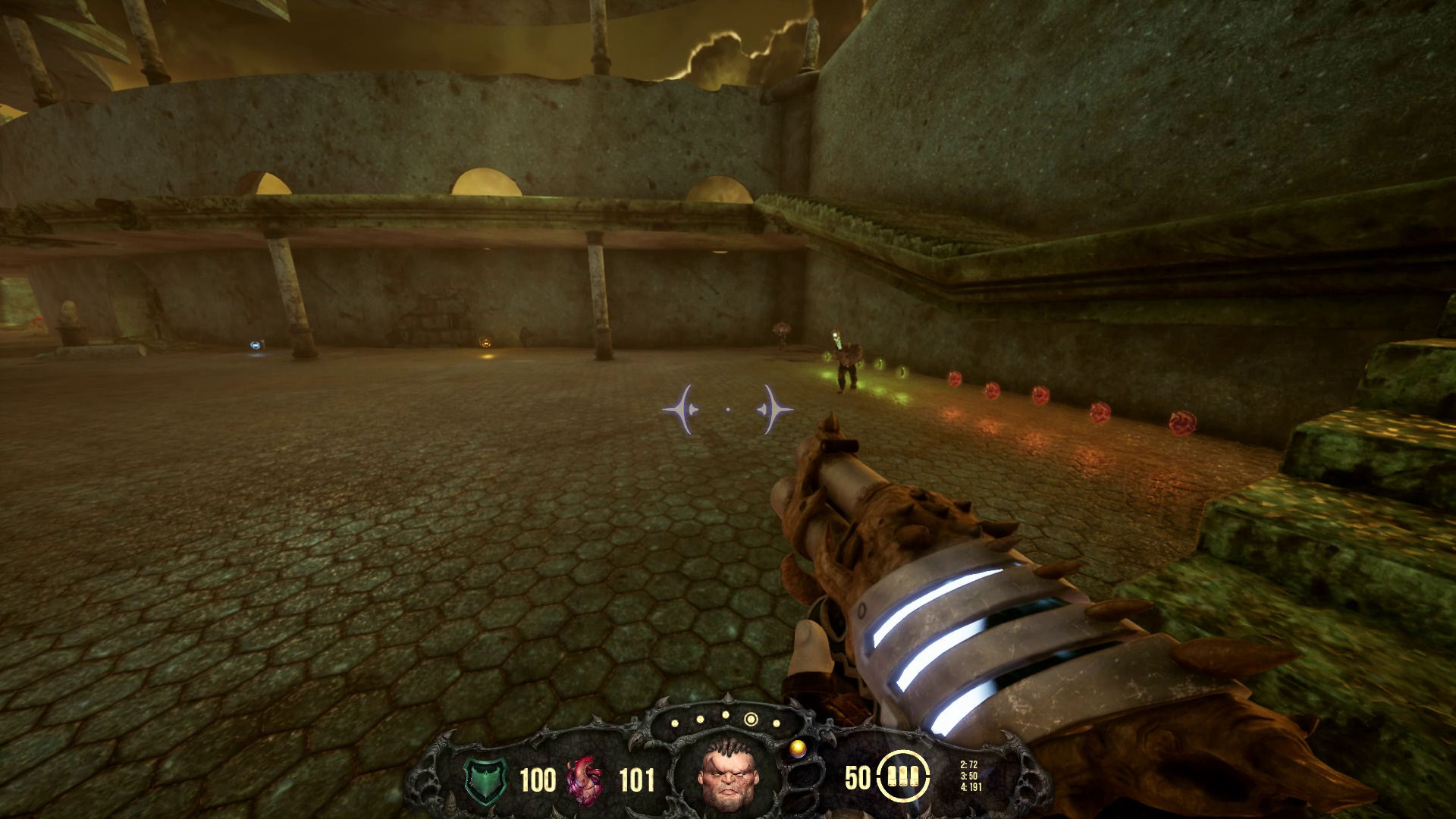 A nivel técnico tampoco estamos ante una gran obra, nos encontramos con gráficos bastante básicos, escenarios muy vacíos y efectos muy sencillos incluso para un shooter independiente como es este. Ya no hablamos de la calidad de texturas ni nada por el estilo sino de que el diseño de todo lo que nos rodea es un tanto soso. La librería de sonidos tampoco mejora y más allá de la voz gutural del protagonista que si está bien, hay monstruos que incluso cuentan con el mismo rugido siendo completamente diferentes haciendo más difícil su identificación sonora y suponiendo una traba a nivel jugable.