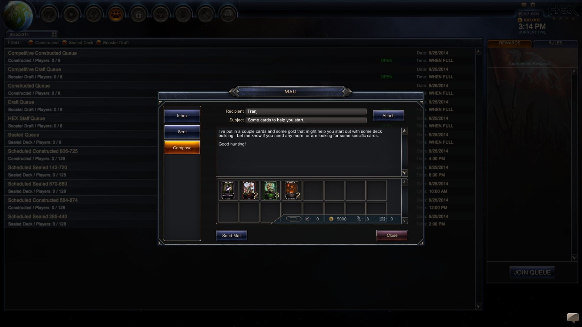 Quizás una de las dudas que puedan llegar a surgirnos de primeras, es la idea preconcebida de que, al hablar de un título free-to-play, quizás nos encontremos en una posición poco ventajosa si no compramos sobres o mazos con los que ser competitivos vía online. Pues bien, parece que Hex: Shards of Fate parece moverse en un exquisito equilibrio, que nos permitirá desbloquear ciertas cartas y mazos en la versión gratuita a través del modo campaña y de la conversión de monedas de oro y platino en sobres en la tienda digital del juego.