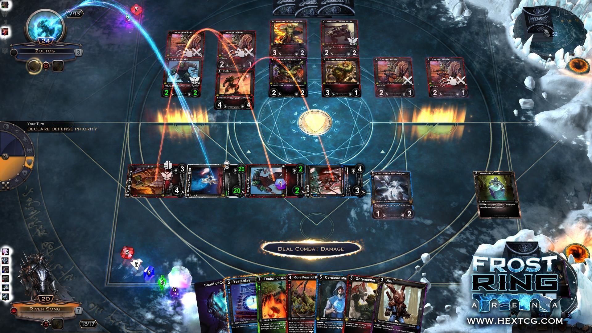 Los combates de cartas utilizan varias características base del género, como lo es la acumulación de recursos, el coste de juego de cada carta o la planificación de turnos. Es decir, en Hex, al igual que en casi cualquier otro título similar, cada carta tiene un coste, que deberemos cumplir para ponerla en juego. Si en Magic existía el maná, aquí tendremos fragmentos en forma de diamantes y trozos del meteorito que en su momento se estrelló contra el planeta impregnándolo todo de magia. Si tenemos la suficiente energía, podemos poner en esa carta en juego, que en función de su tipo o texto, tendrá un papel u otro.