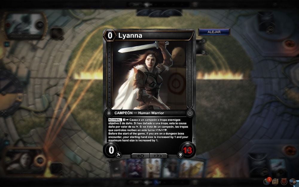 Como os comentábamos, el texto en un videojuego de cartas, en el que cada cartón tiene sus propias reglas y condiciones, es fundamental, y debe tener una fuente clara, evidente y a la vista del usuario con una simple pasada. Gameforge y Cryptozoic se han inspirado de una forma clara en la estructura de la disposición de Magic -¡incluso en algunas animaciones y efectos visuales!-, pero no han sabido trasladar de la misma manera la parte legible de sus cartas. Hablamos de una fuente minúscula, poco clara, que nos obliga a pinchar en cada carta para saber qué efectos desencadenará su puesta en juego.