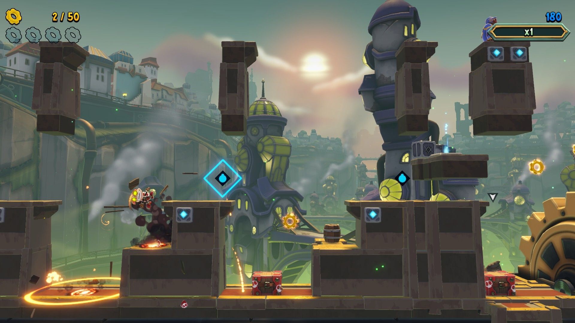 Lo que tenemos aquí es una serie de niveles de dificultad creciente donde Ziggs corre de manera automática por el escenario. Nuestras acciones son escasas y aun así el juego se encargará de complicarnos la partida con más trampas, enemigos y sucesiones de botones: salto, caída y lanzamiento de bombas. Unos iconos por el escenario nos indicarán qué hacer en cada momento justo cuando pasamos por ellos, es decir, que todo se basa en tus reflejos y la intuición, pues el ritmo de acciones va acompañado del musical. El objetivo pasa por conseguir el mayor número de coleccionables, desbloquear fases y completar el juego con una duración de unas pocas horas; en teoría el interés por superar récords ampliará su vida tanto como desees, pero la repetición es un tanto artificial –como necesidad para continuar avanzando- y la rejugabilidad no se siente tan entretenida como para que apetezca volver a ellas por simple gusto.