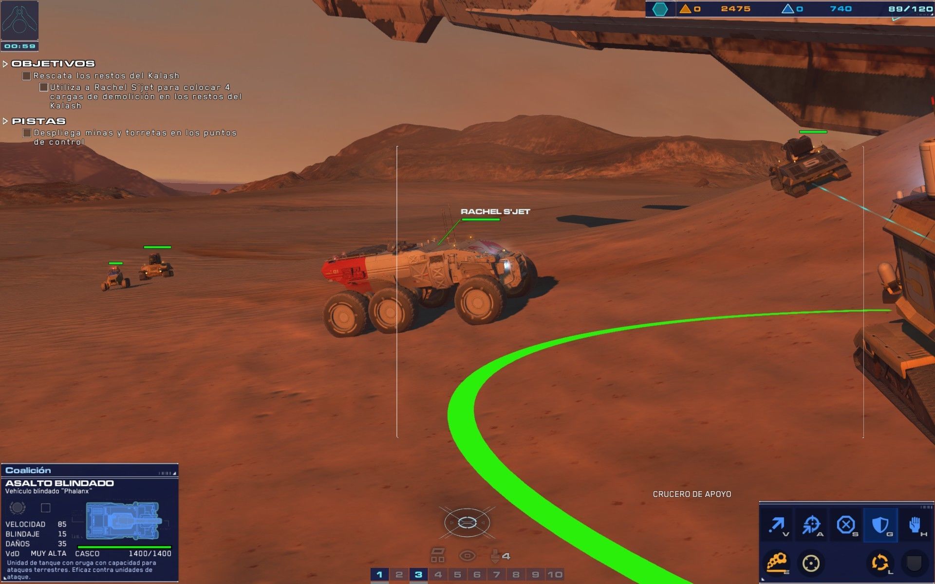 Como podéis ver el Kapisi no es simplemente una base móvil de construcción de tropas y recogida de recursos. Además de los ataques aéreos podemos gestionar la capacidad el vehículo para disparar, defenderse o regenerarse gestionando una serie de puntos reajustables en cualquier momento para darle versatilidad a nuestra base madre según en qué situación nos encontremos. Al ser el vehículo de mayores dimensiones del que dispondremos nos encontraremos situaciones en las que no podrá pasar por sitios por donde el resto de tropas sí que puede acceder, multiplicando la estrategia para llegar a objetivos, recoger recursos o defender posiciones de manera adecuada sin descuidar nuestro centro de mando. La destrucción del Kapisi o del Baserunner de Rachel supondrá siempre nuestra derrota automática.