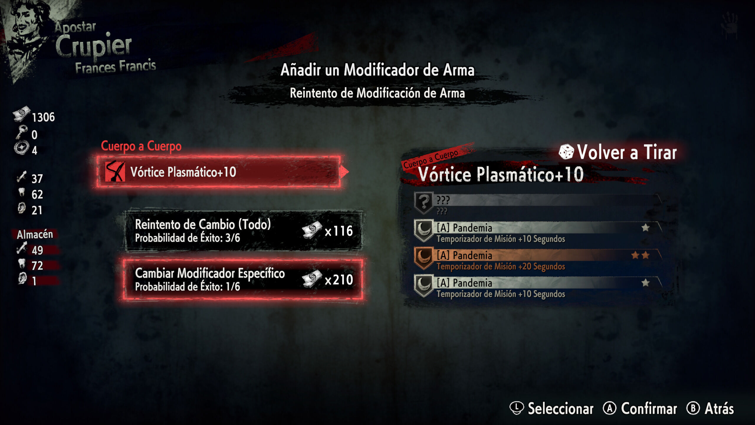 Lo mismo ocurre con las armas, con un sistema de progresión que choca con el resto del diseño del juego. Debería contribuir a que probemos diferentes estrategias, a que juguemos una partida con las hachas y otra con las sierras circulares, que alteremos con las escopetas y los cócteles molotov. Pero como las armas suben de nivel tras cada run exitosa y en las partidas hay maneras de mejorar el equipamiento que llevemos equipado, lo óptimo es especializarse en un arma concreta, aunque sea peor que otras que adquiramos después, porque mejorará exponencial y rápidamente.