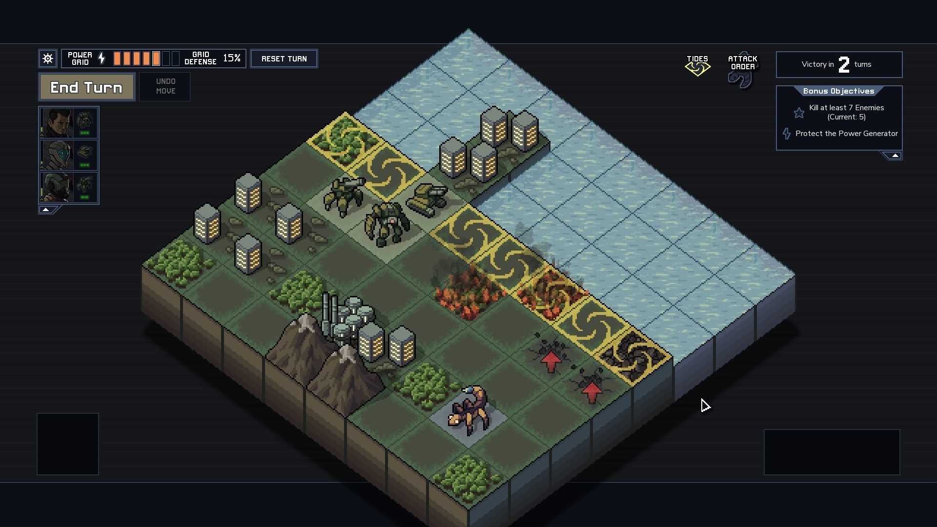 Como era de esperar, no serán pocas las veces en las que el juego nos planteará situaciones en las que no podremos defenderlo todo, de forma que nos tocará ingeniárnoslas para, al menos, minimizar los daños en la medida de lo posible. Lo interesante es que este planteamiento convierte cada turno en un pequeño puzle a resolver, casi como si estuviésemos jugando una especie de partida de ajedrez, dándonos a cambio una sensación de satisfacción inigualable cada vez que conseguimos cuadrarlo todo y completar la misión a la perfección.