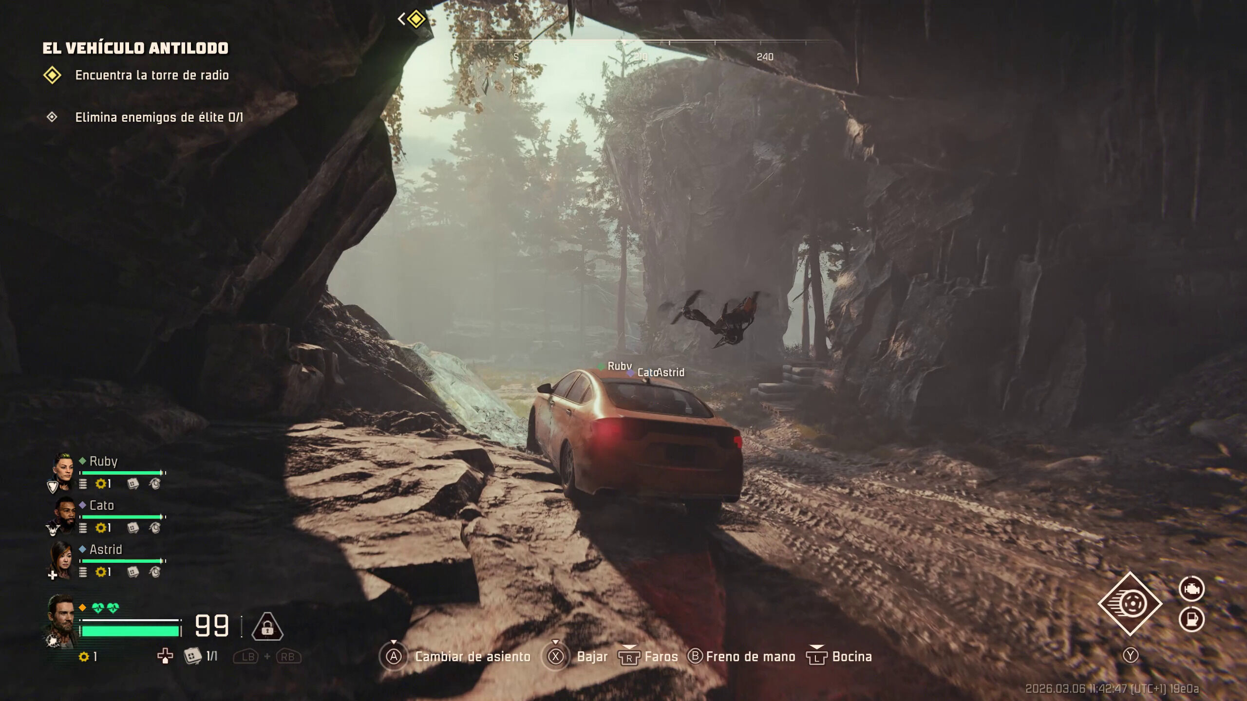 Se parece tanto a Left 4 Dead como a Back 4 Blood, pero hay algo que diferencia mucho a Toxic Commando en lo jugable, y lo encontramos en el uso de los vehículos. Podemos ir a pie si queremos, pero el juego está diseñado para que nos montemos todos en el mismo coche y vayamos de un punto a otro aniquilando enemigos. Hay una ranchera con un lanzallamas equipado, así como un todoterreno con torreta y una ambulancia que cura a todo el equipo cuando nos montamos. Uno conduce, pero los demás no se quedan de brazos cruzados: deben disparar, porque los trayectos están repletos de peligros.
