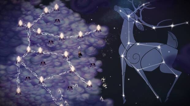 En Jotun, los niveles consisten en investigar unas zonas ligeramente laberínticas para dar con una runa y luego volver al inicio. Sí es cierto que los desarrolladores se han esforzado por hacer cada ambiente distinto: bosques, cuevas, el mismísimo Yggdrasil o montes helados, cada área está bien diferenciada y con un tipo diferente de peligro. ¿Cuál? Eso depende de cada uno. Una fuerte ventisca de la cual hay que resguardarse, una criatura marina –que no cuenta como enemigo porque no se puede derrotar-, enanos trabajando en una mina –bastante simples pero en gran número-, tentáculos que surgen de la tierra, gases venenosos, un enorme cuervo o rayos en un paisaje celestial donde aparece una especie de puzle para dibujar constelaciones.