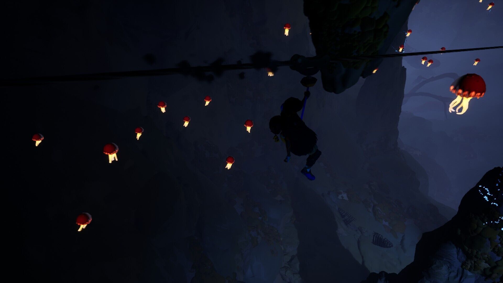 Para el final hemos dejado su virtud más evidente: el apartado audiovisual de Jusant es una pasada. La capacidad que tiene para maravillar con sus golpes de diseño de niveles se replican en el apartado gráfico con paisajes que sorprenden por cómo trabajan la espectacularidad desde el minimalismo. Ahí tienen mucho que decir su paleta de colores y el modelado tridimensional tanto de personajes como de los entornos y objetos. Todo funciona en una misma dirección que además se bifurca apostando por explorar nuevas estéticas en diferentes zonas: desde la zona más árida de la montaña hasta cuevas oscuras y rincones húmedos. La banda sonora y los efectos de sonido, por cierto, refuerza constantemente las emociones sin llegar a convertirse en protagonista.