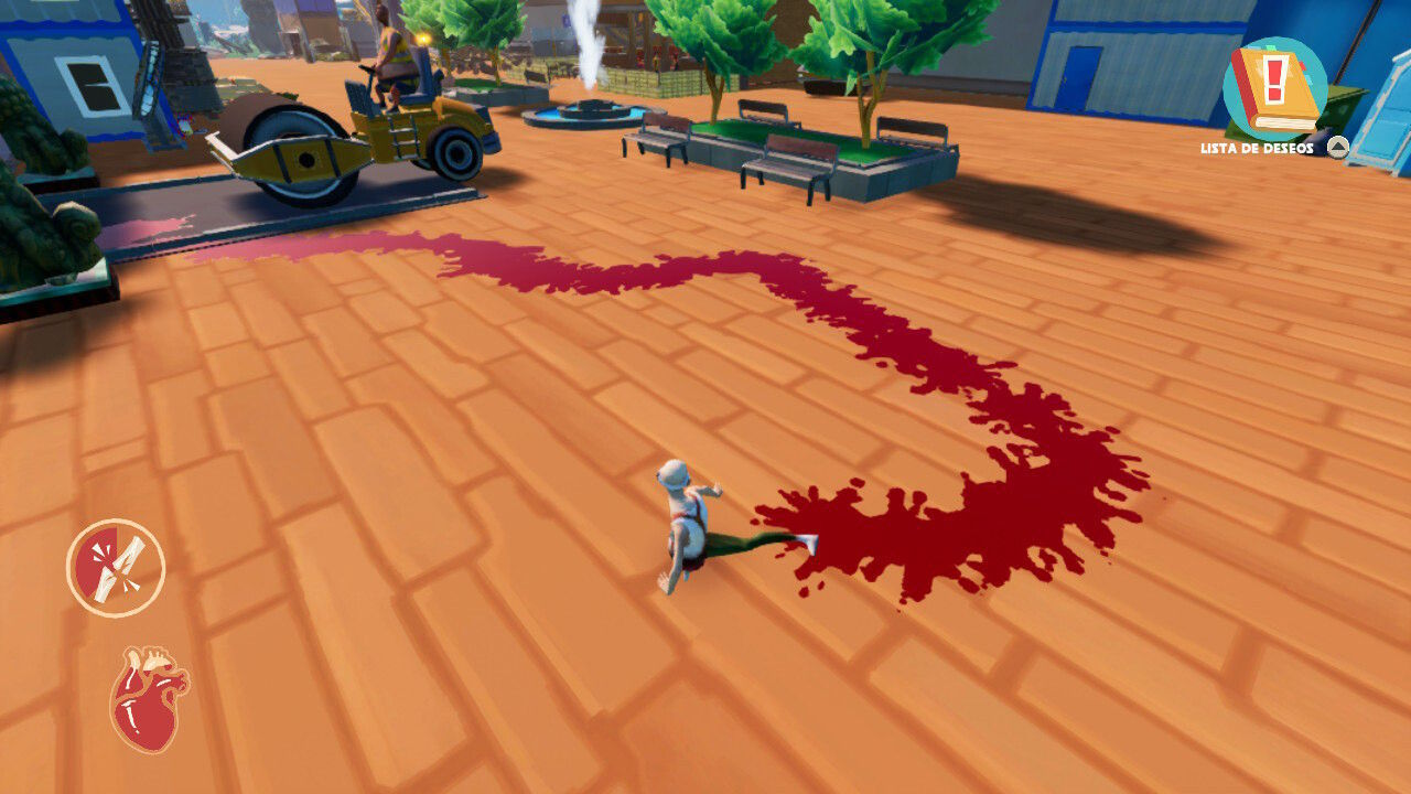 Aunque podemos explorar la ciudad de Just Die Already con total libertad, el juego nos propone una serie de objetivos marcados en un diario que sirve de ayuda y de hilo conductor para no acabar perdidos en mitad del escenario sin saber qué hacer. Tal y como ocurría en Goat Simulator, aquí hay una enorme cantidad de secretos que quedan ocultos en los rincones más insospechados de la ciudad: sólo dejándonos llevar por la locura podremos descubrir nuevas formas de movimiento que nos permitirán acceder a estos sitios secretos, algo que le da un toque de interés al juego. Por ejemplo, hay lugares estrechos a los que sólo podemos llegar siendo un torso, por lo que antes de acceder a ellos tendremos que perder las extremidades y la cabeza, por ejemplo.