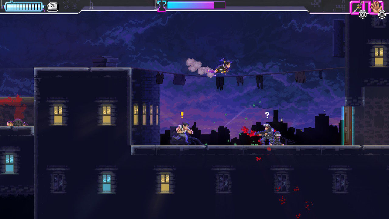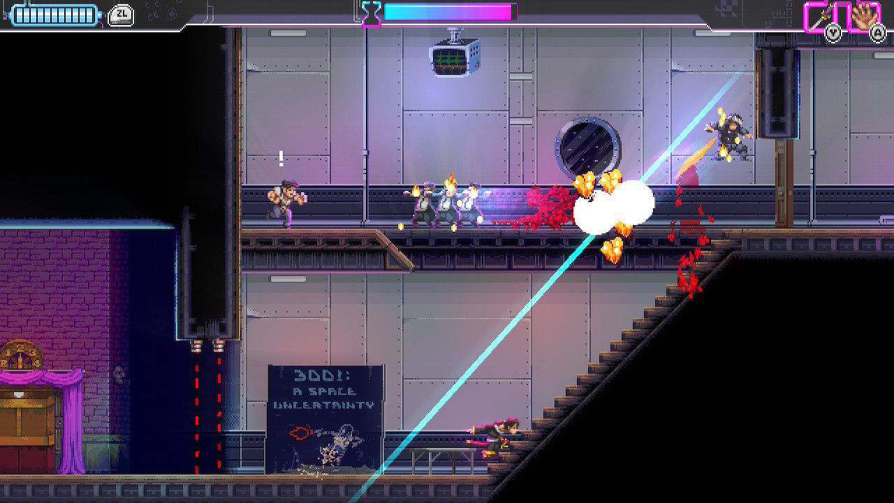 Katana Zero es un juego de acción en dos dimensiones en el que controlamos a un samurái en una época actual. Eso quiere decir que todos los enemigos a los que nos enfrentaremos tienen armas del siglo XXI, incluyendo pistolas, escudos antidisturbios y alguna que otra más. Las razones por las que nos encontramos en esta situación se van desvelando poco a poco, y nos ha sorprendido la carga narrativa que encontramos en este título.
