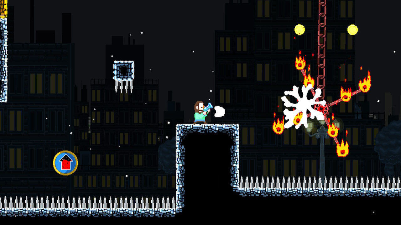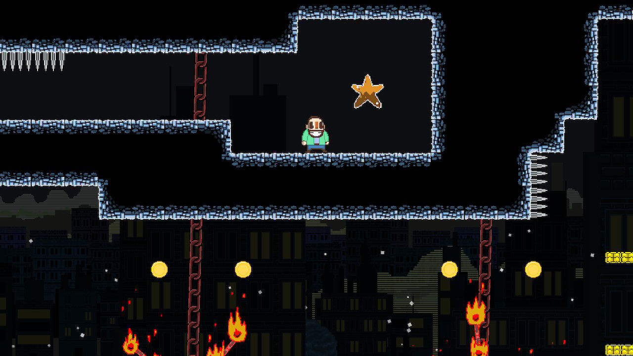 La mecánica de juego tampoco presenta demasiadas sorpresas. Con tres botones (salto, dash y disparo) debemos ir sorteando las diferentes trampas y obstáculos plataformeros que cada nivel integra. Dichas fases poseen una duración exigua, pero su nivel de dificultad es relativamente exigente… aunque se han habilitado multitud de puntos de control, así que el sufrimiento no es para nada demencial ni mucho menos. De hecho, es posible superar la aventura de una sentada en un par de horas, cifra que puede duplicarse si nos entretenemos en obtener los tres coleccionables (una estrella, un corazón y un trébol) que se encuentran repartidos en cada fase.