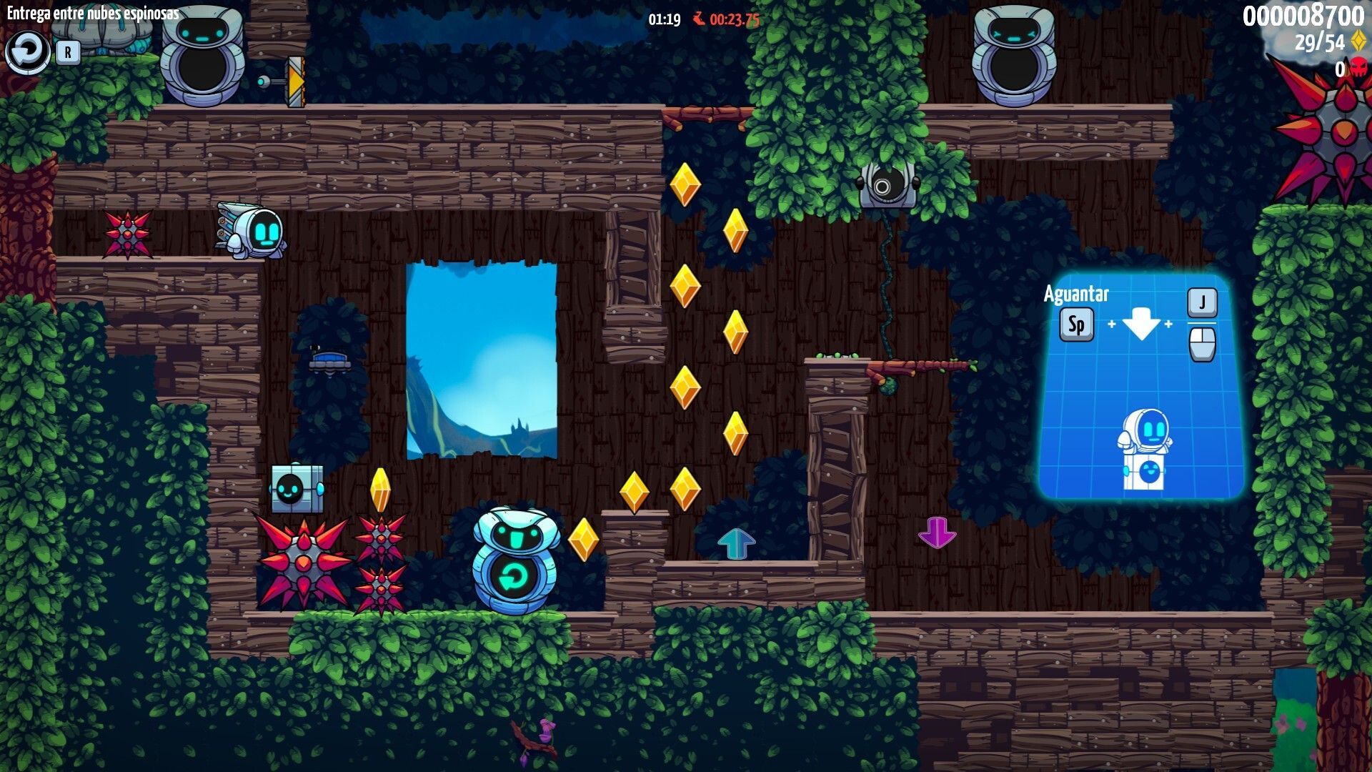 El control es preciso y, si bien la originalidad es justita –el jugador ya conocerá los mecanismos de decenas o centenares de juegos-, cumple sobradamente con lo que se puede pedir a un plataformas 2D, desde enemigos tontorrones –pero colocados estratégicamente para fastidiar- a cuchillas, bolas con pinchos, plataformas que desaparecen al saltar sobre ellas, potenciadores… El ritmo varía mucho, y de esos pequeños puzles pasaremos a saltos mucho más milimétricos, como los que podríamos encontrar en Super Meat Boy; advertimos que ciertas fases se pueden hacer algo frustrantes. Lo bueno es que su núcleo jugable –el de conseguir una caja antes de llegar al final- invita a explorar, a recorridos no lineales, donde tu preciado objeto se encuentra detrás de un montón de trampas.