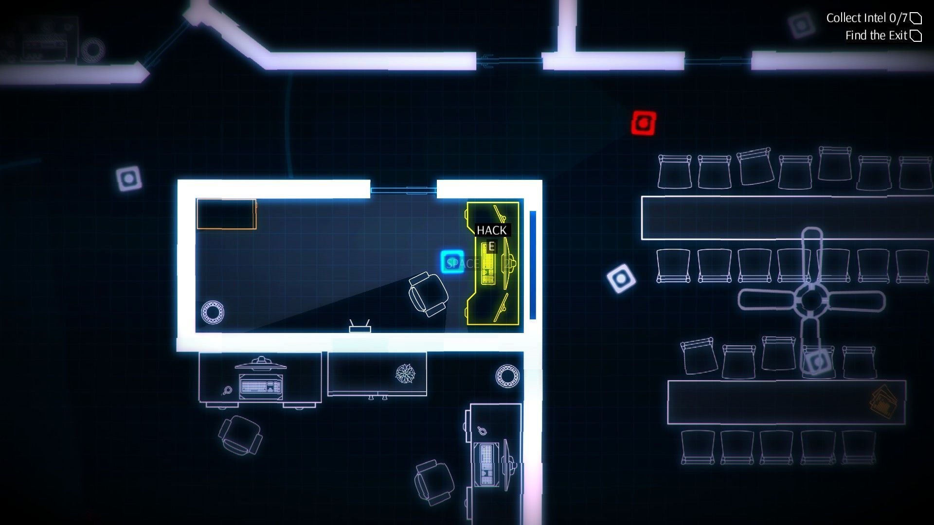 Gráficamente se trata de un juego muy minimalista con escenarios que hacen uso de tonos blancos, azules y negros y que emula la sensación de estar jugando sobre el plano de un edificio. Es resultón y llamativo pero no termina de conquistar en ningún momento. Lo que sí que nos ha gustado bastante es su banda sonora, con temas muy pegadizos e inspirados que se adaptan como un guante tanto a la propuesta del juego como a su estilo visual. Tanto es así que es sin lugar a dudas el mejor apartado de todo el título, y con diferencia, por lo que os recomendamos subir el volumen cuando lo juguéis.