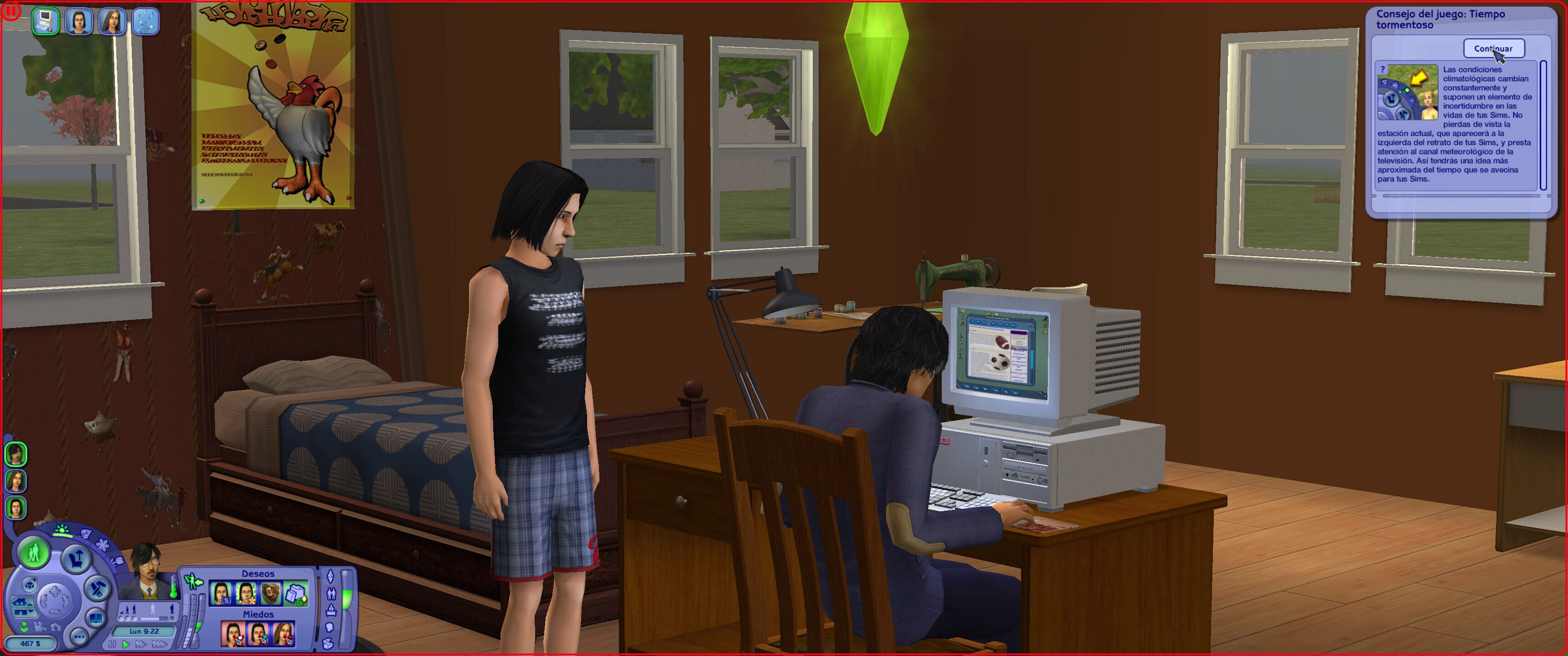 Hemos construido nuestra casa, la hemos amueblado y comenzado a apreciar las primeras demandas de nuestros Sims. Tuvimos que esperar unos días para ganar el suficiente dinero y hacer un baño para cubrir sus necesidades de higiene, y hasta pasado el primer día laboral no teníamos el suficiente dinero para que la nevera se llenara con algo de comida. Rememorar las visitas de vecinos a altas horas de la noche o cómo se deprime tu Sim a la primera de cambio son cosas que no recordábamos y nos han llenado de nostalgia.