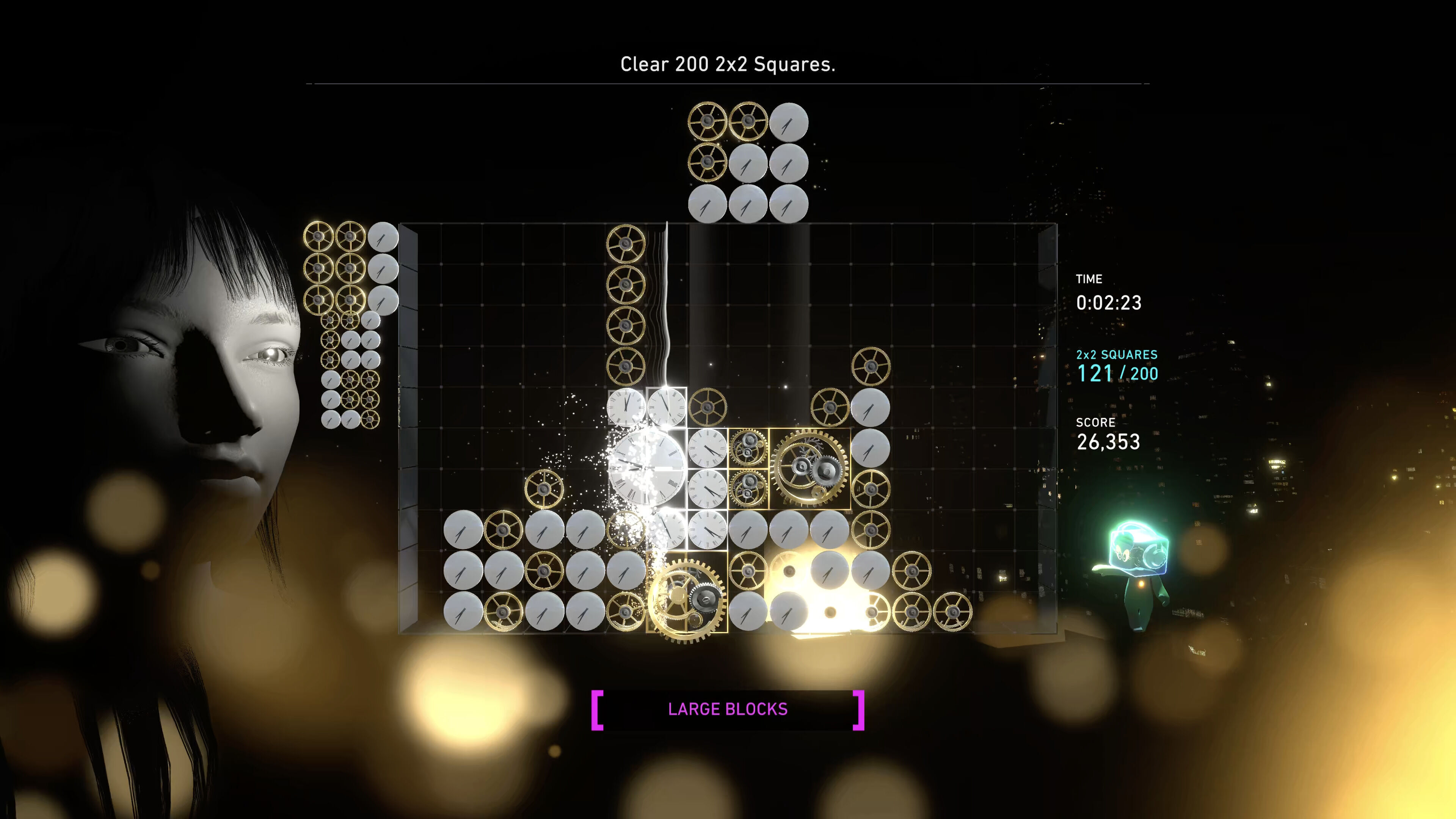 A su lado, los modos Desafío y Misión ofrecen algunos de los mejores momentos de Lumines Arise. El primero propone puzles autoconclusivos que retuercen las reglas de lo que esperábamos del sistema; el segundo, una colección de retos que premian la precisión, la lectura del ritmo y la creatividad. El modo Desafío en concreto nos ha encantado, y ojalá se expanda en el futuro, porque su potencial para alargar la experiencia es enorme.