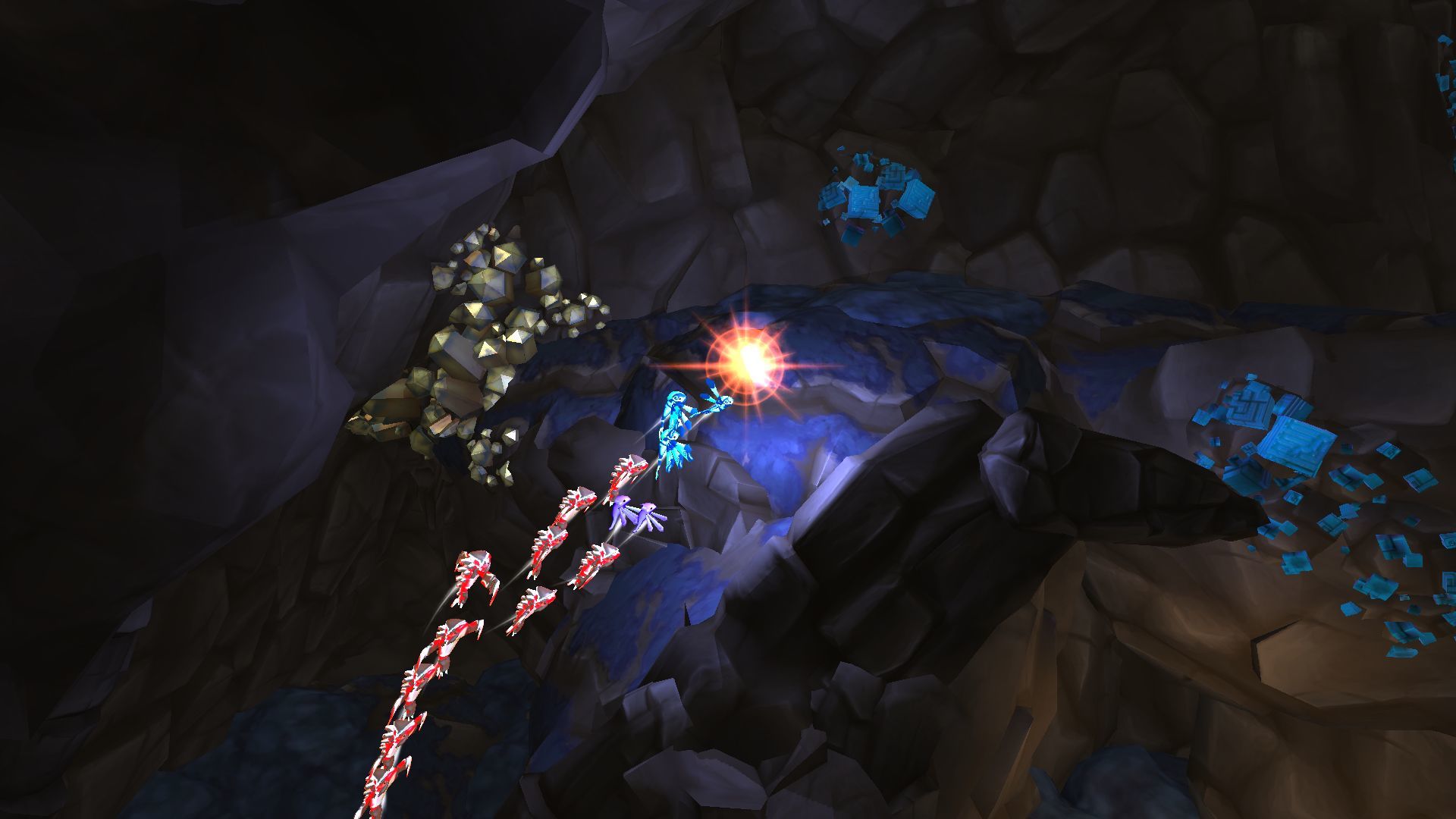 La inspiración del estudio Speelbaars está clara, pero Lumini sabe diferenciarse con un par de giros a la mecánica de los juegos anteriormente citados y aporta su apartado audiovisual mucho más atractivo. En este caso controlamos a la especie que da título al juego, una criatura muy similar a un pez volador. Tan volador que esta vez no hablamos de un mundo bajo el agua, aunque a efectos jugables es casi lo mismo. El entorno de cuevas, el propio diseño de enemigos o la flora recuerdan constantemente a zonas submarinas, pero en ocasiones podremos salir a entornos más abiertos para comprobar que efectivamente, estamos sobrevolando un extraño planeta.