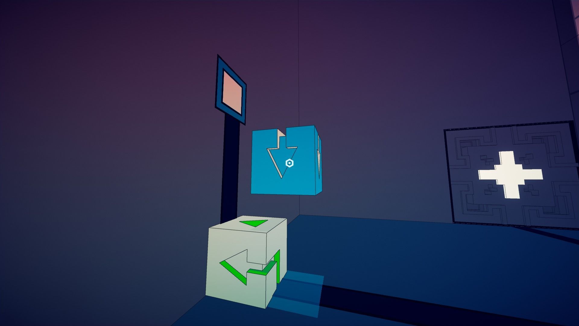 Cambiar nuestra orientación nos facilita explorar las habitaciones o zonas exteriores desde el ángulo que deseemos, y alcanzar rincones que de otra manera sería imposible. El objetivo es avanzar por estos pasillos y salas, abrir puertas y resolver los retos que las bloquean, que suelen consistir en algún tipo de dispositivo que se activa posando una caja de color concreto. Parece que es sencillo… pero las cajas tienen su propia física, y para ellas sí hay un arriba y abajo que reconocerás por su flecha o el color –que es el mismo que el suelo-. Es decir, que mientras te encuentres en su mismo suelo, podrás moverlas con facilidad, pero si "caen" a una pared, quedarán inmovilizadas.