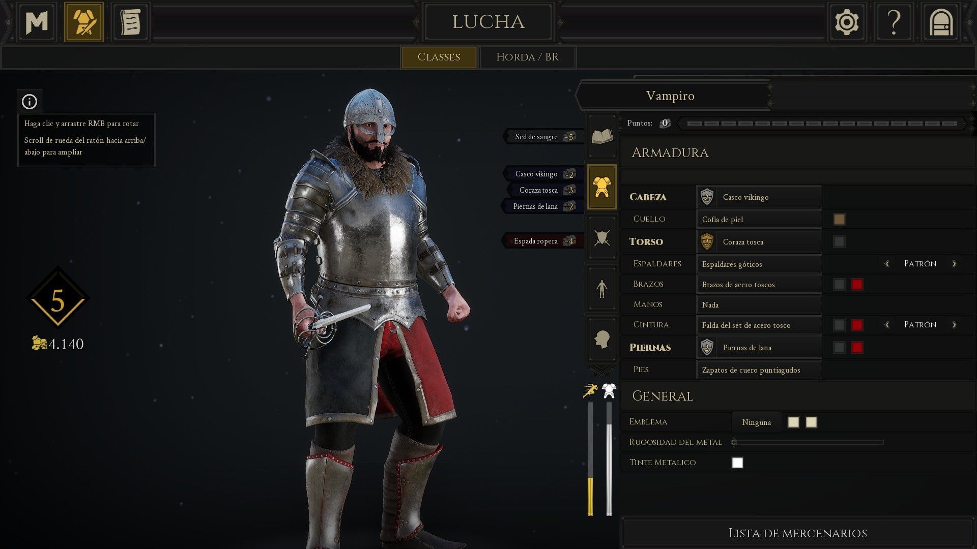 Uno de los aspectos más interesantes que nos encontramos en Mordhau es la posibilidad de crear un guerrero a nuestro gusto con el equipamiento que queramos y distintas habilidades que nos permitirán hacer más daño con los puños, ser más ágiles, tener distintos modificadores de daño, etc.