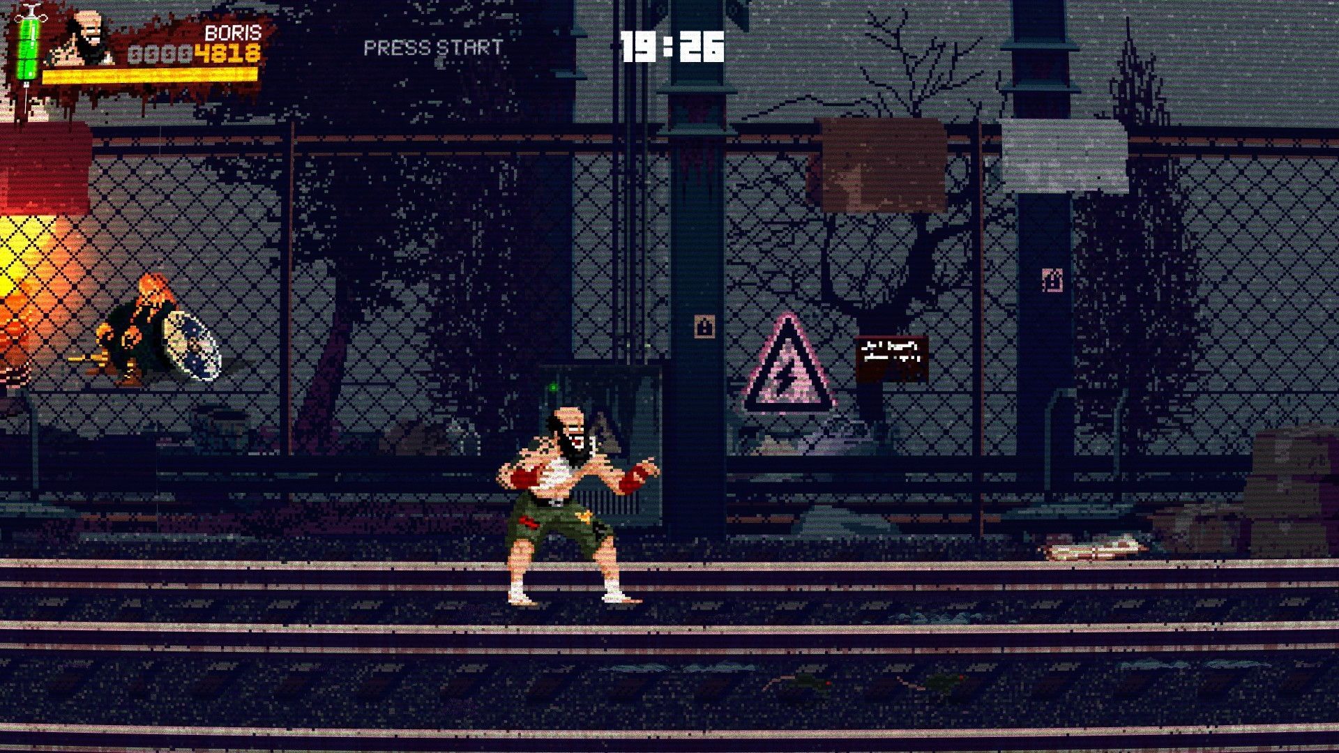 Gráficamente es un poco irregular. Tiene un estilo macarra y casi underground que le da una personalidad más agresiva que los clásicos Streets of Rage, pero tampoco se ve mucho mejor; a veces se recarga tanto el escenario con las texturas que, combinado con los píxel de tamaño grande, se hace complicado distinguir a nuestro protagonista. La reducida paleta de colores asemeja mucho algunos de los personajes jugables con nuestros enemigos, así que la parte artística a veces patina más de lo que debería. Y comete sacrilegios que rompen las reglas del pixel-art, como aplicar desenfoques a ciertos golpes y el uso de transparencias.