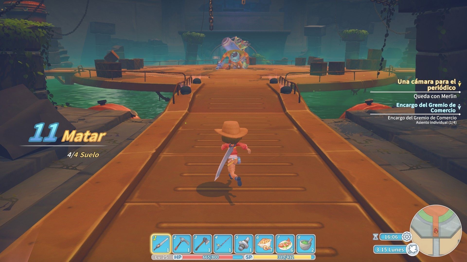 Las 3D le dan a Portia un aire muy diferente al de otros juegos similares y, en general, consiguen buenos resultados mientras recorremos escenarios o mazmorras o incluso cuando hablamos con otros personajes, pero en la recogida de recursos plantea algunos problemas con la cámara y no funcionan tan bien. Esto se nota sobre todo en la minería, que es una de las actividades que lleva más tiempo dado el carácter constructor del juego. Se excava sobre todo en ruinas abandonadas en las que, además de materias primas, hay reliquias que se detectan utilizando unas gafas especiales. Entramos en las ruinas y buscamos esos objetos mientras picamos en distintas vetas de minerales y es en los angostos túneles que se excavan donde peor resultan las 3D, de forma que es fácil desorientarse y acabar perdiéndose, hasta tal punto que el estudio ha implementado la opción de salir por la vía rápida de las zonas de excavación.