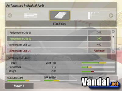 La modificación de coches ha sido incrementada y mejorada considerablemente. En la anterior entrega se limitaba a partes visuales y a una especie de "matización" técnica, pero esta segunda parte profundiza mucho más en este aspecto. Tiene un pletórico repertorio de opciones de configuración para el exterior de nuestro coche, hasta el punto de poder crear nuestra propia y exclusiva versión de cada uno de los más de treinta modelos reales, licenciados y habituales del tuning. Esta vez también podremos involucrarnos en el interior del vehículo, configurando el rendimiento de partes con todo tipo de parámetros al estilo Gran Turismo. Un detalle a agradecer pero que también tiene cierto toque estratégico es que ahora nuestro garaje no está limitado a un coche, sino a cinco, pudiendo entonces tener nuestra propia colección de coches, cada uno quizás apropiado para un tipo de carera, pero sin poder tener todos los del juego para así conservar cierto elemento estratégico que nos obligue a cambiar de coche de vez en cuando.