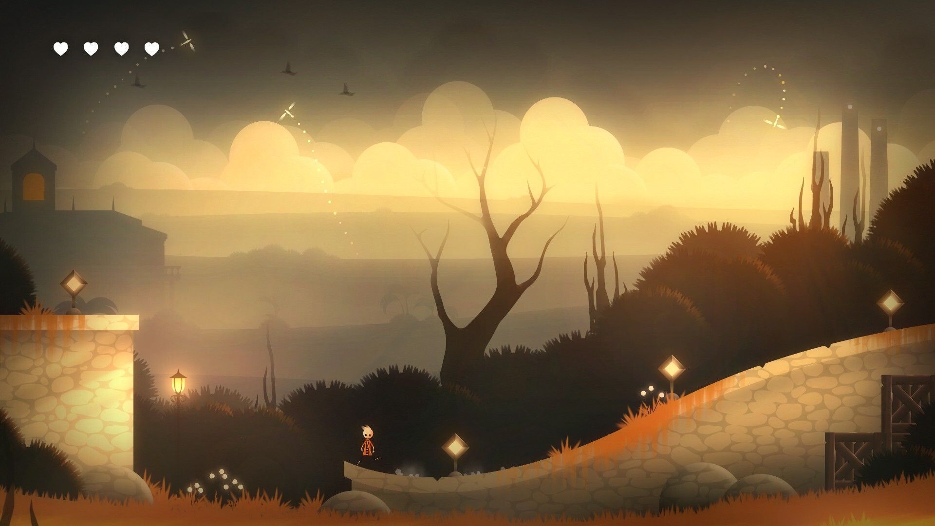 Neversong –antes conocido por Once Upon A Coma- nos habla de Peet, un niño que despierta del coma y descubre entonces que su novia Wren ha desaparecido. Algo ha sucedido a los adultos –no han vuelto desde que salieron a buscar a Wren-, y a medida que avanza su historia, descubriremos secretos sobre el pasado de su protagonista en un mundo que parece extraído de un retorcido cuento infantil; se podría decir que se inspira de manera vaga en las películas de Tim Burton, o al menos sus tono. Desde un principio el juego destaca su intención de causar emociones y, si bien tampoco destaca por una historia compleja, al menos consigue que su ambientación sea más llamativa que la de muchos plataformas pixelados de garrafón. ¿Qué ha pasado realmente? ¿Está muerta Wren tal y como dicen otros niños?