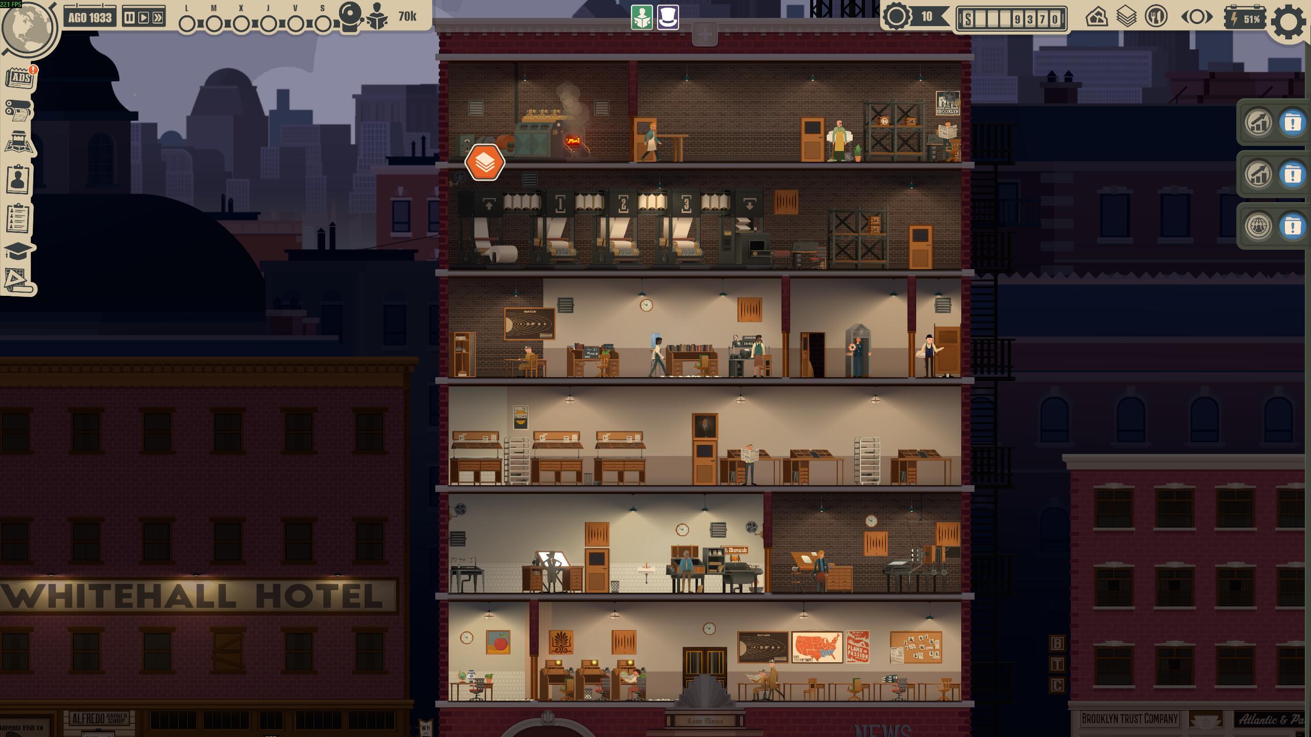 La estética art déco encaja muy bien con el juego, las mecánicas de construcción son sencillas y bastante asequibles para todo tipo de jugadores y la gestión de los empleados, sus contratos y sus necesidades tiene más chicha de la que parece en un principio y puede complicarse bastante a medida que avanza la partida y comenzamos a tener un mayor número de periodistas, ilustradores, publicistas o personal de limpieza a nuestro cargo, generando picos de dificultad que quizás no están del todo bien equilibrados.