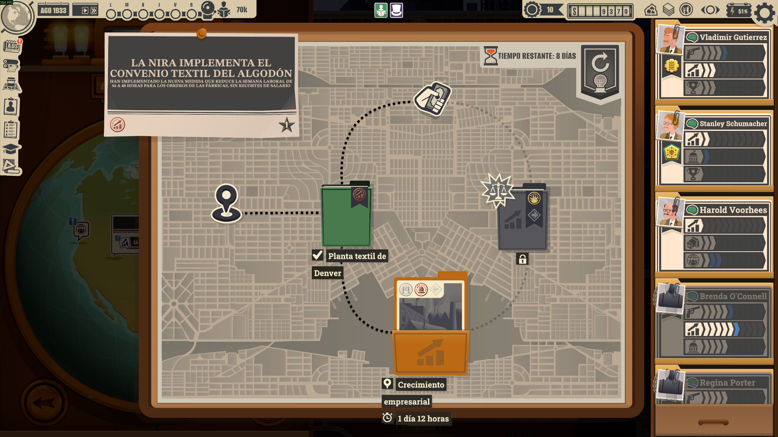 Aquí jugar con los tiempos, las habilidades, tomar decisiones de qué línea de investigación seguir en cada noticia (entre un perfil más informativo, más polémico...) y competir con los periódicos rivales en una carrera literal por lograr una exclusiva o información relevante es algo que "pica" bastante y que es muy satisfactorio.