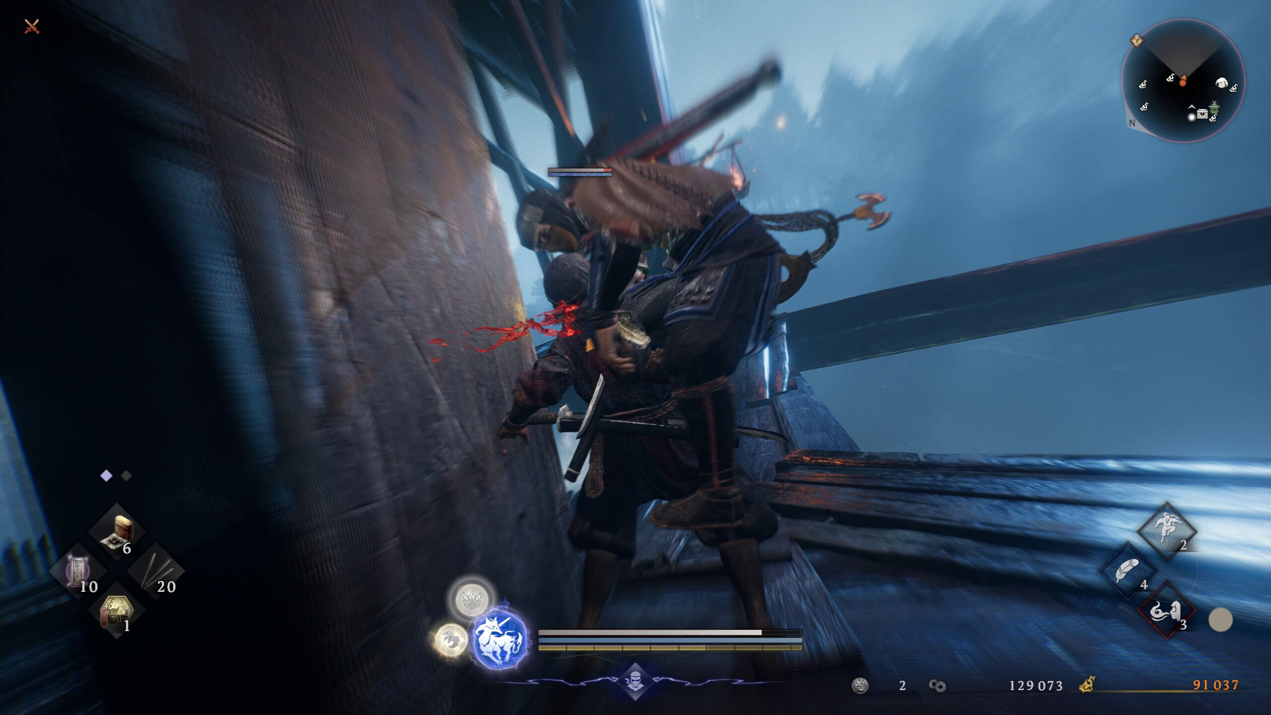 Necesitaríamos muchos párrafos para desgranar las virtudes de un sistema de combate que va mucho más allá de lo explicado. Los espíritus tienen más importancia que en anteriores Nioh: además de otorgarnos estadísticas y poderes, cuentan con una habilidad final que nos transforma temporalmente en un samurái o ninja de una fuerza descomunal, algo nos ha salvado en más de una ocasión, pero que tampoco desequilibra el juego. Podemos invocar a yokai con diferentes poderes. Disponemos de un enorme catálogo de habilidades pasivas con las que modificar nuestro estilo de juego, como hacer un samurái inamovible o un ninja que prácticamente no toca el suelo. No falta el árbol de habilidades activas, básicamente un generador de combos personalizable, para el samurái, el ninja y para cada una de las armas. Y todo esto, además de los puntos invertidos al subir de nivel, se puede reiniciar en cualquier momento sin perder recursos, lo que motiva a probar diferentes maneras de jugar en una misma partida o a probar otras estrategias ante una situación que se nos está haciendo cuesta arriba.
