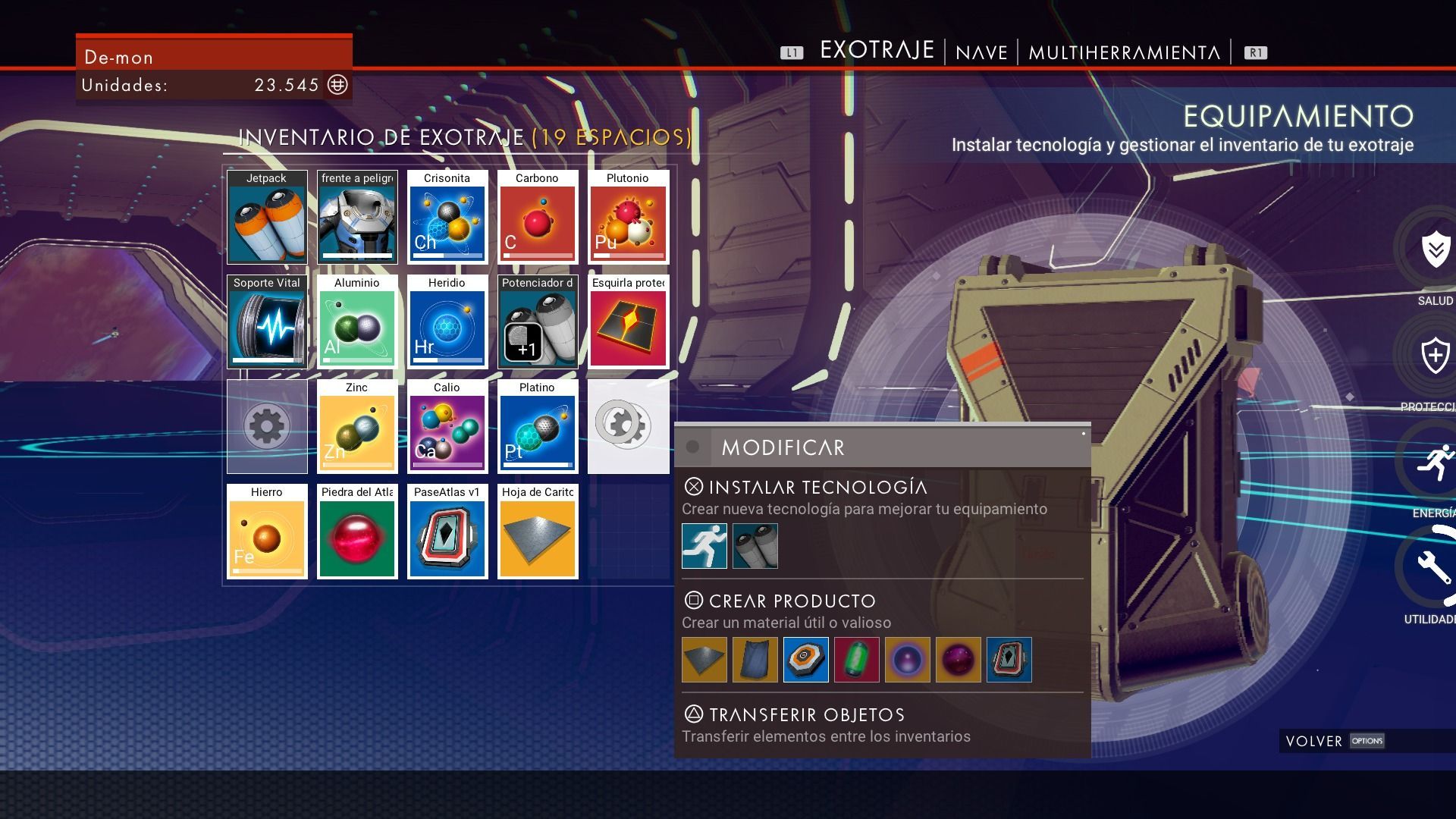 El exotraje y la nave disponen de una serie de espacios vacíos en los que colocar objetos o mejoras. Parte de la gracia –porque lo es, aunque para muchos jugadores será una molestia- se encuentra en no recoger todo el mineral que encuentras en plan Síndrome de Diógenes: muy pronto el casillero se nos hará pequeño. Una caja puede acumular una cantidad concreta de platino o de carbono, y en cuanto amplías la variedad tendrás los bolsillos llenos. Sí, hay formas de ampliar el exotraje o mejorar el almacén de la nave, pero siempre deberás mantener un equilibrio entre recursos y tecnología. Por ejemplo, podrías potenciar más el rayo extractor de tu pistola o el poder ofensivo con disparos y granadas. Son decisiones limitadas por la expansión de la multiherramienta.