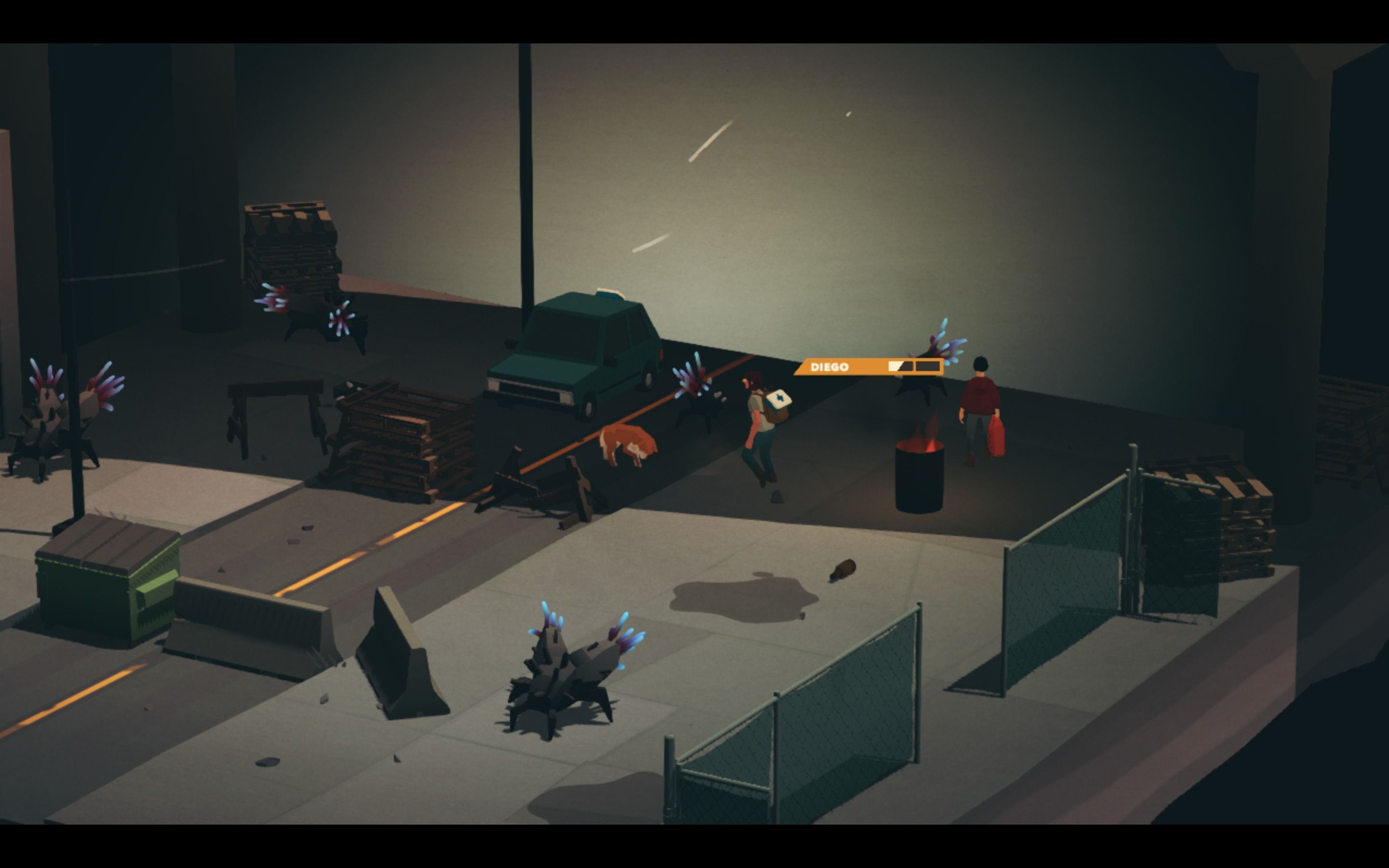 En determinados momentos del juego podremos llevar un grupo de supervivientes de tres o cuatro personas -con algún perro incluso como fiel aliado y compañero-, algo que aumenta nuestras probabilidades de éxito en la lucha contra los monstruos mutantes que surgen del suelo. Mientras realizábamos una incursión en una gasolinera en busca de víveres, un grupo de seres rodeó nuestro coche en la oscuridad. Mientras unos cuantos personajes recorrían el escenario en busca de materiales, botiquines y cualquier objeto que fuese de utilidad, otros luchaban con piedras y palos contra estos formidables monstruos, que os adelantamos, son duros de roer y capaces de matarnos a las primeras de cambio -los más grandes nos causarán muchos quebraderos de cabeza-. En un atisbo de suerte, observamos un pequeño generador el cual decidimos explotar como distracción -perdiendo su preciada carga de gasolina- y el que usamos para llevarnos a algunas criaturas por delante mientras escapábamos con las manos vacías y nuestro depósito en números rojos.