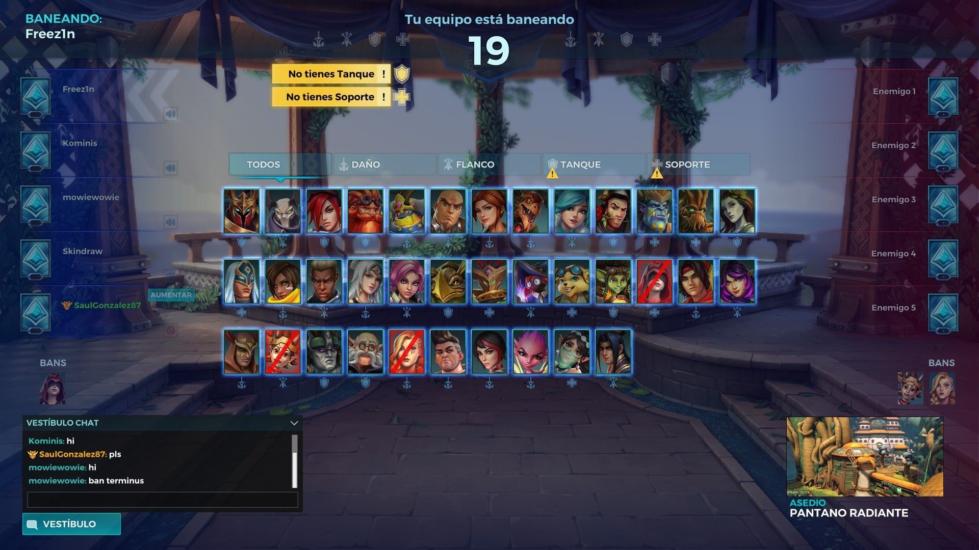 En estas partidas competitivas jugaremos siempre en el modo asedio y la principal diferencia la notaremos antes de empezar la partida, momento en el que tendrá lugar una fase de elecciones y descartes en la que cada equipo podrá prohibir dos campeones y escoger los campeones con los que quiere jugar, no pudiendo repetirse el mismo campeón entre los dos equipos.