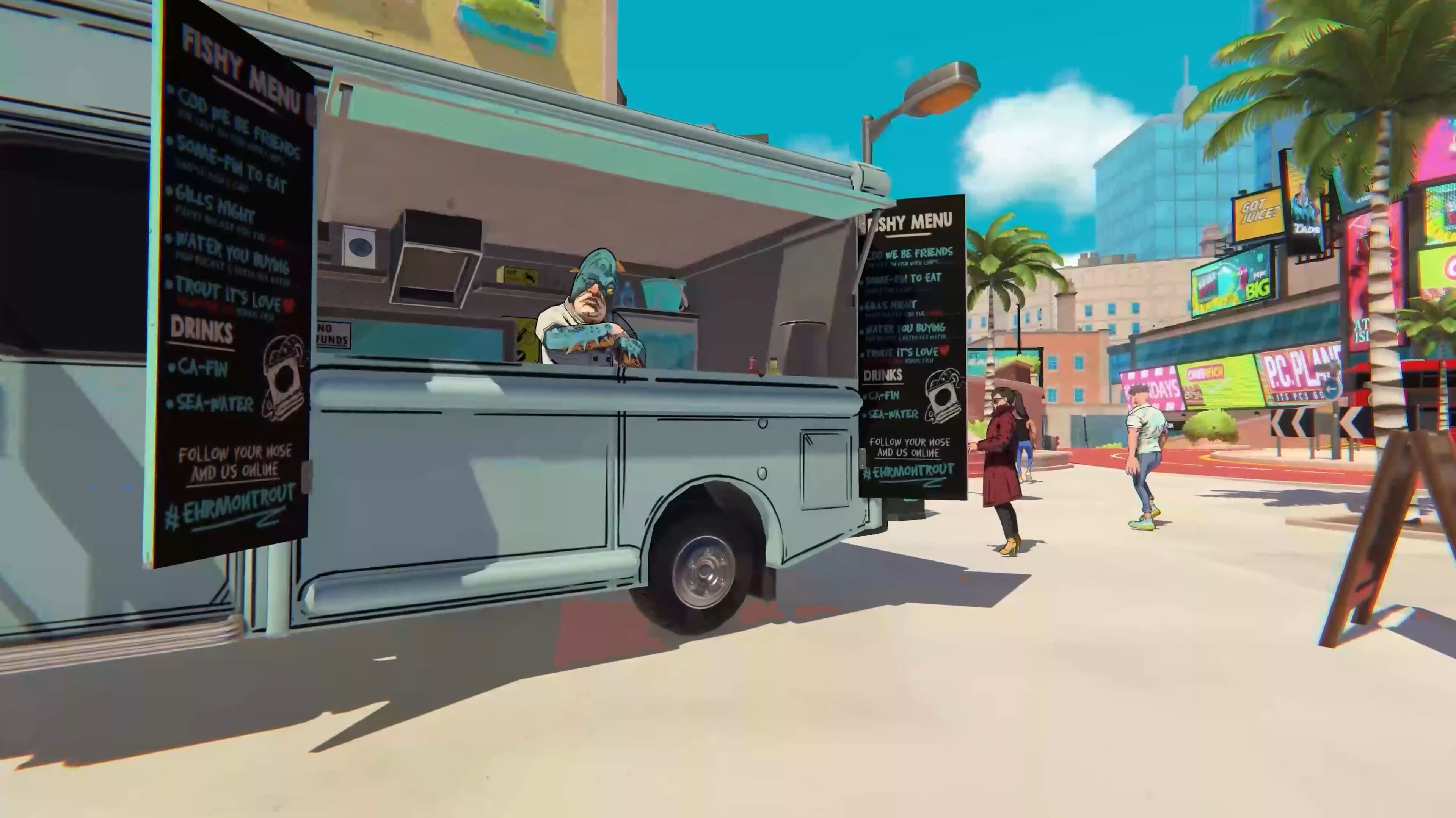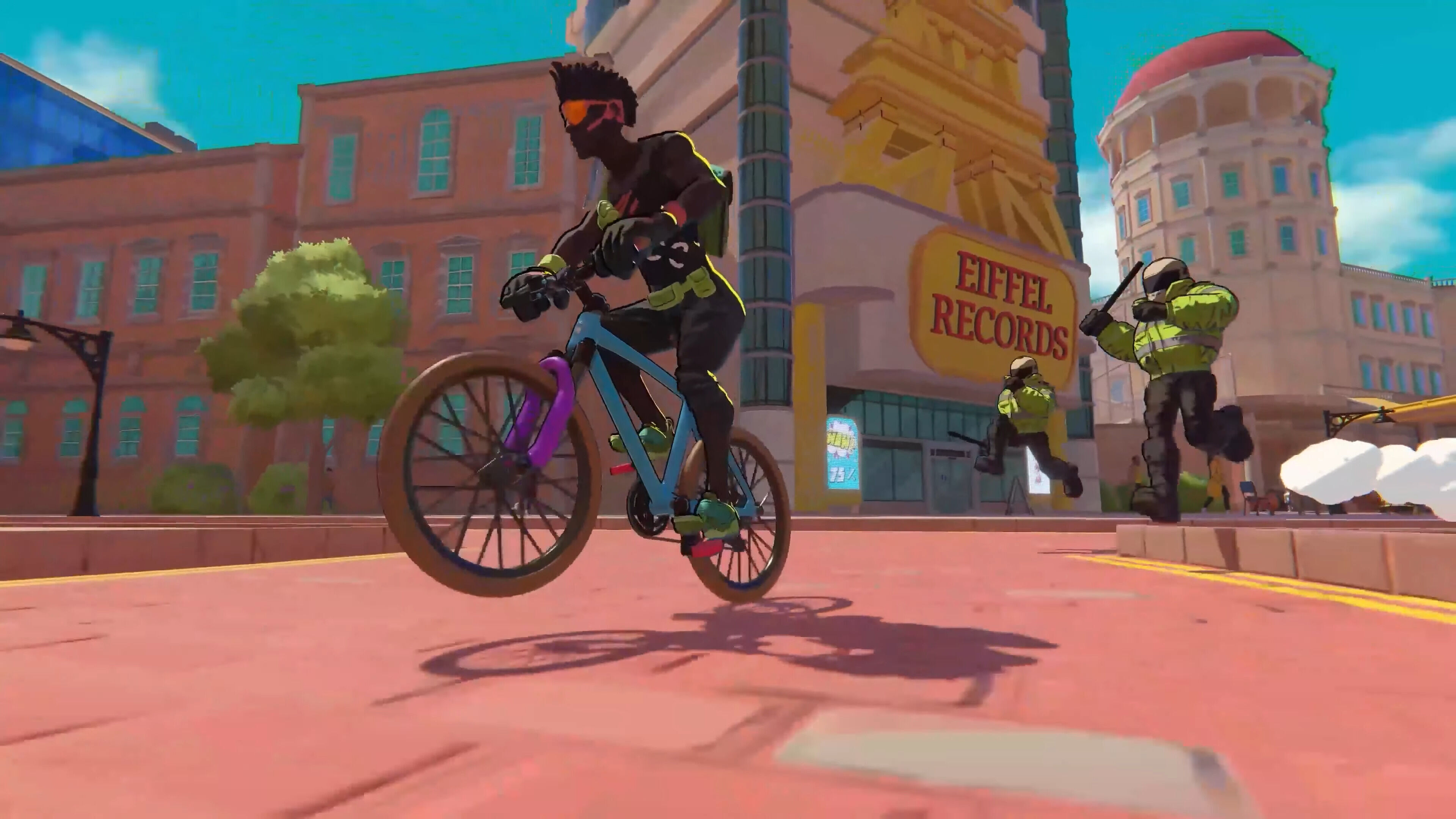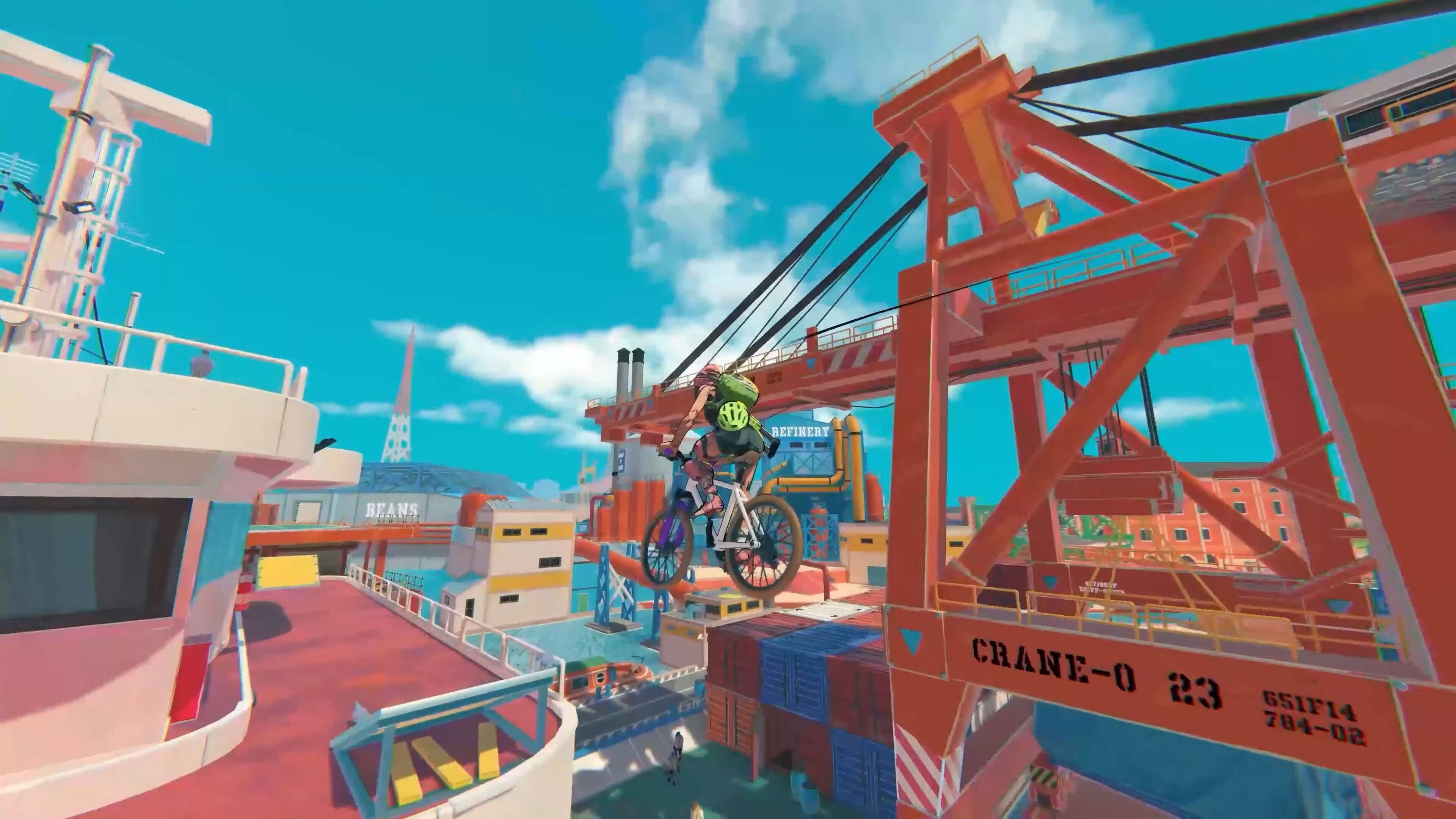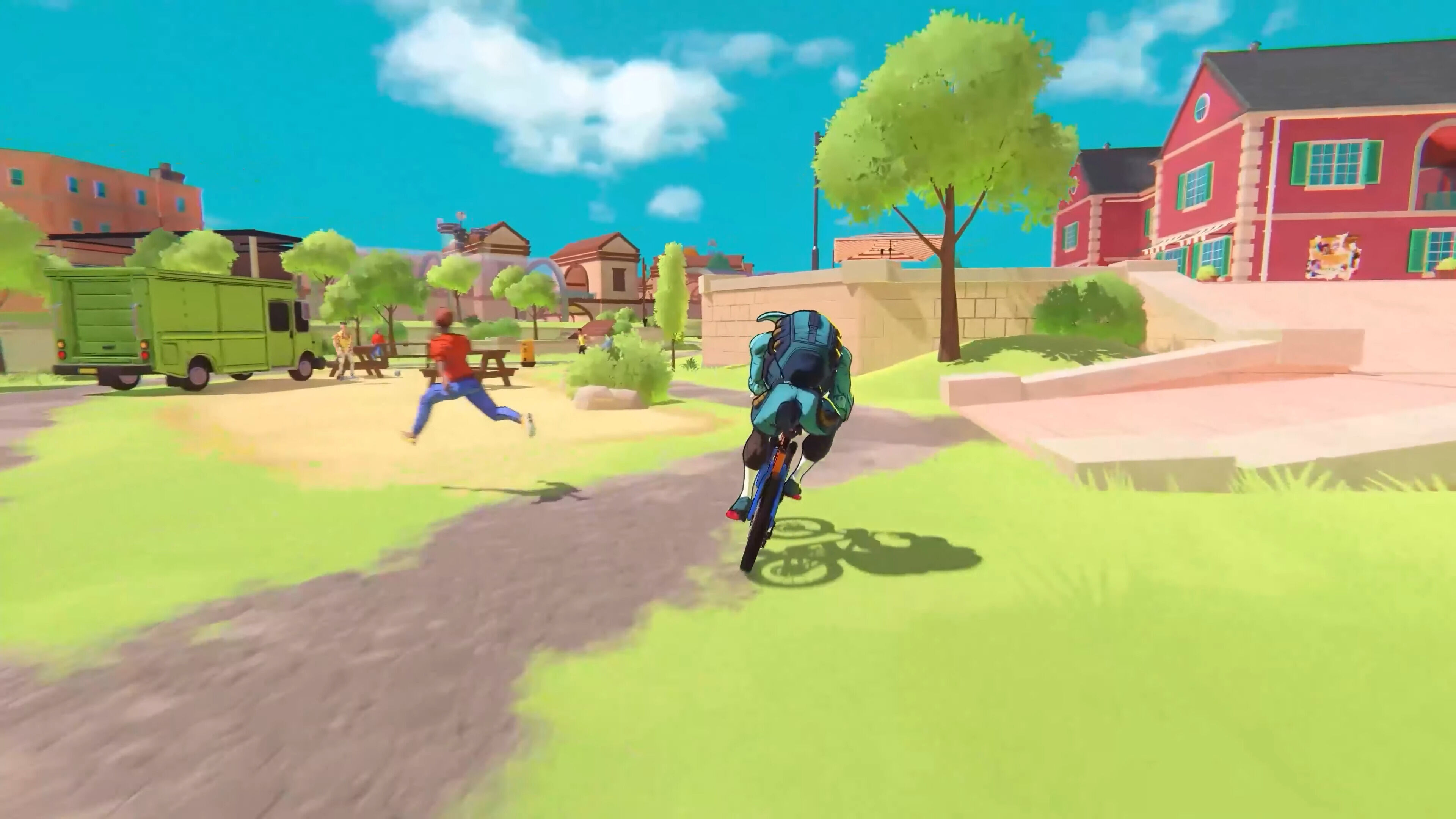 Dicho esto, ¿qué es lo que tienes que hacer en el videojuego? Pues principalmente moverte a toda velocidad por el mundo abierto de New Island realizando entregas, aprovechando el terreno para protagonizar saltos, derrapar como un loco, deslizarte por muros y hacer grinds sobre barandillas. Recuerda mucho a Jet Set Radio por cómo puedes aprovechar el escenario para interactuar, aunque con mayor complejidad y variedad de movimientos. No obstante, incluso así se queda corto, y más pronto que tarde acabas por darte cuenta de que la acción acrobática se hace muy repetitiva.