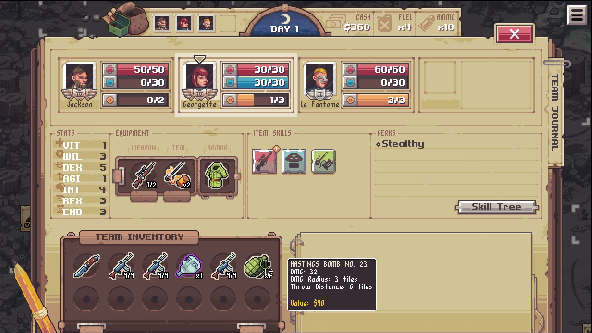 Además, y aunque no se prodiga demasiado, hay muchos toques de humor y clichés inherentes al universo que decide adaptar y parodiar. Tenemos compañeros muy bien dibujados, con perfiles característicos de este tipo de historias, secundarios y aliados muy especializados, que aunque apenas son unas líneas de texto y un puñado píxeles en pantalla, son muy reconocibles y propios del género cinematográfico y literario del que tanto bebe Pathway. En pocas partidas, y una vez hayamos desbloqueado un número grande de estos héroes y compañeros, tendremos un equipo de mercenario tan variopinto y divertido que será muy difícil desprendernos de algunos de ellos en nuestras partidas. Tendremos hasta 16 personajes distintos, cada uno con sus propias habilidades, debilidades o características, unos aspectos que tendremos que tener en cuenta antes de lanzarlos a la aventura. Si a eso le sumamos la citada ambientación, tenemos una propuesta muy arrebatadora para gran parte del público.