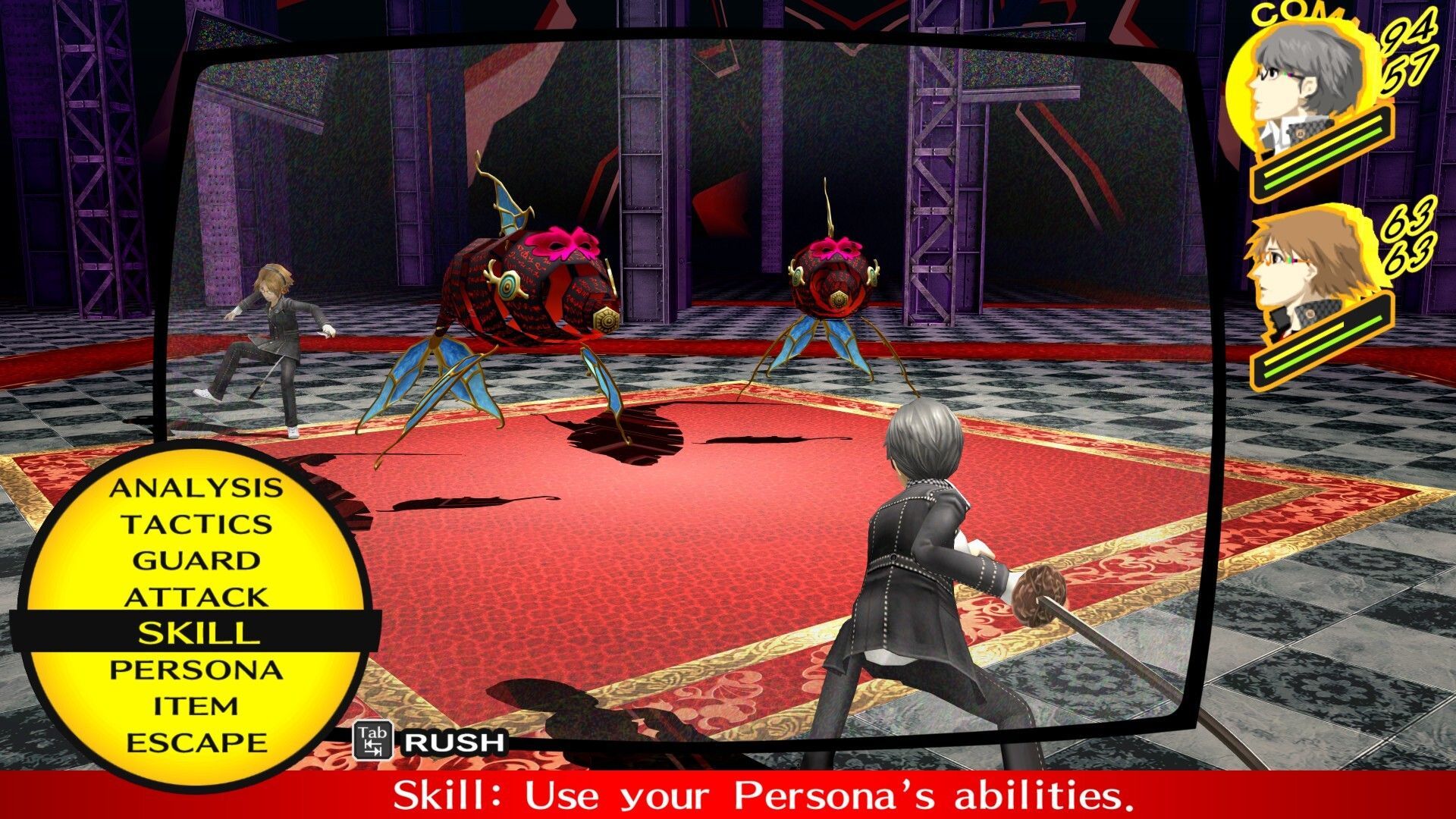 En lo que respecta a las mazmorras, estas se generan aleatoriamente y nos retan a subir una serie de pisos buscando las escaleras que nos lleven al siguiente mientras avanzamos por un laberinto de pasillos y luchamos con un adictivo sistema de combate por turnos. La clave de estos enfrentamientos radica en explotar las debilidades de nuestros enemigos y cubrir nuestros puntos vulnerables, todo ello mientras obtenemos nuevos Personas (unos seres que nos dan poderes y definen nuestras estadísticas), los fusionamos para crear otros nuevos que hereden características de los anteriores y aprendemos nuevas habilidades.